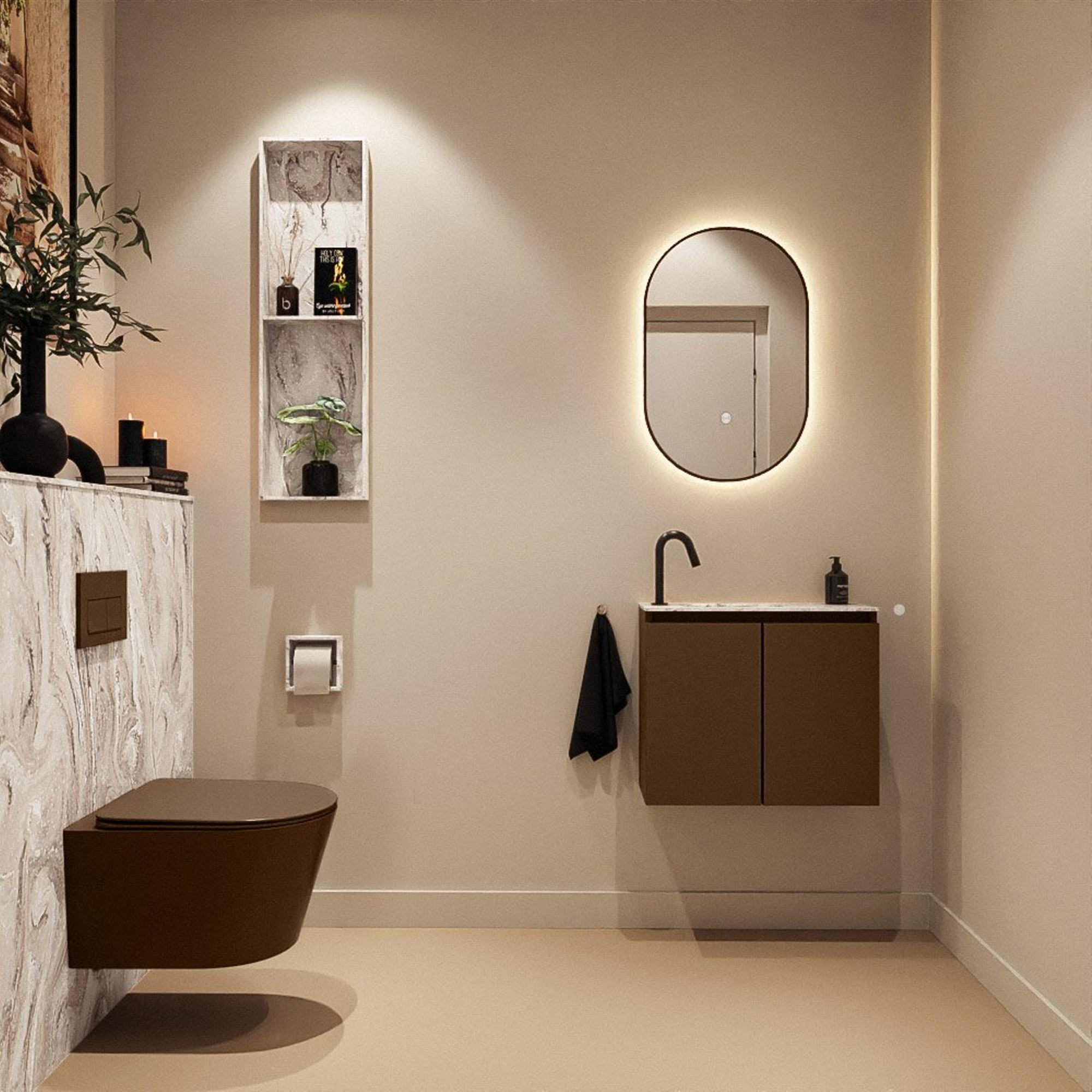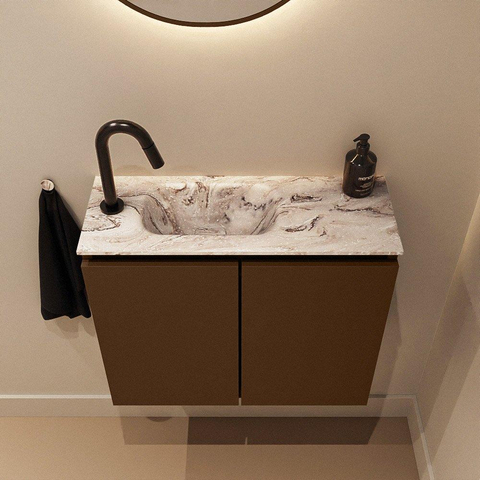 MONDIAZ TURE-DLUX 60cm toiletmeubel Rust. EDEN wastafel Glace positie links. Met 1 kraangat.