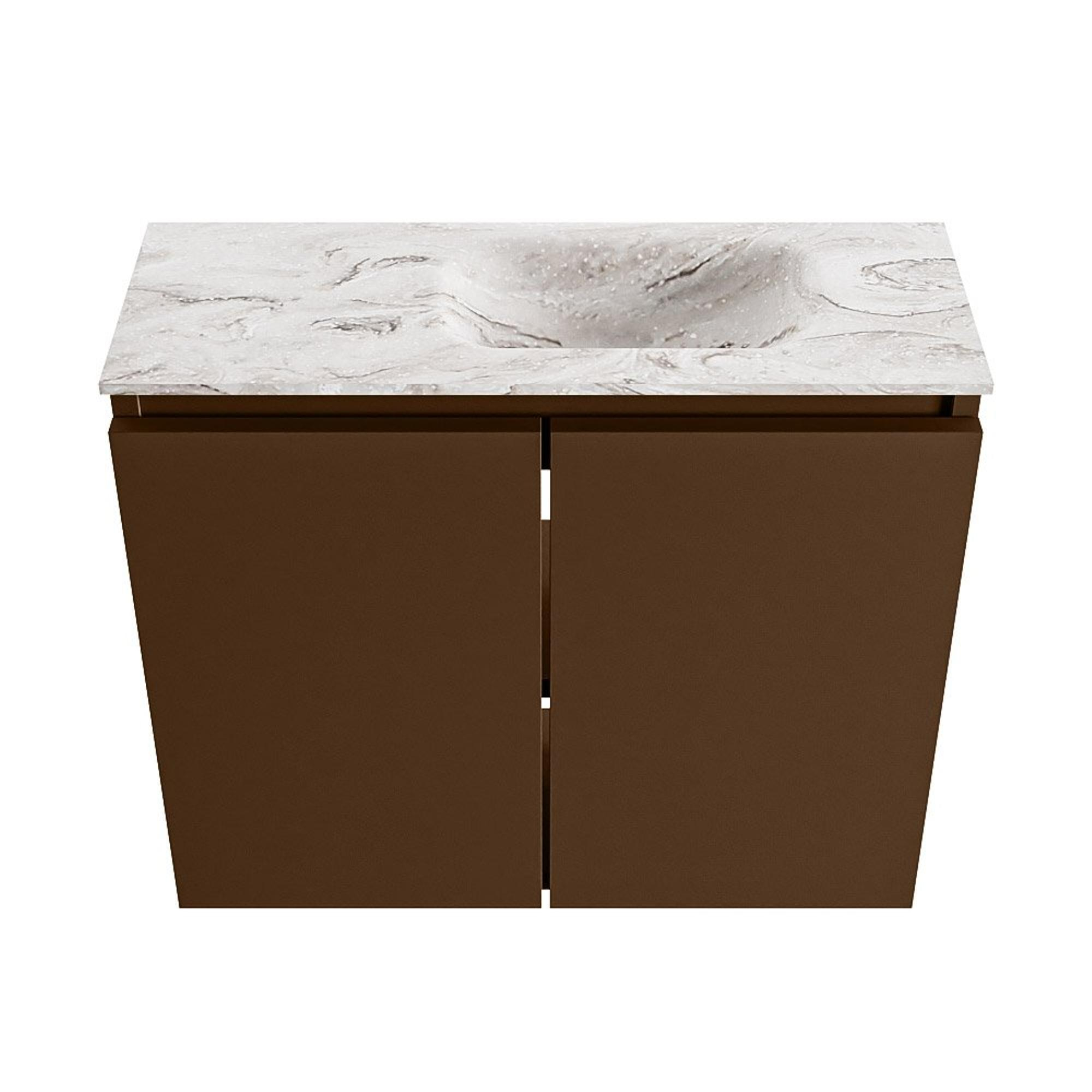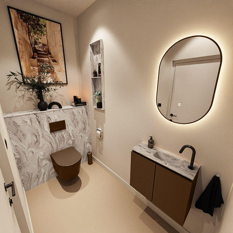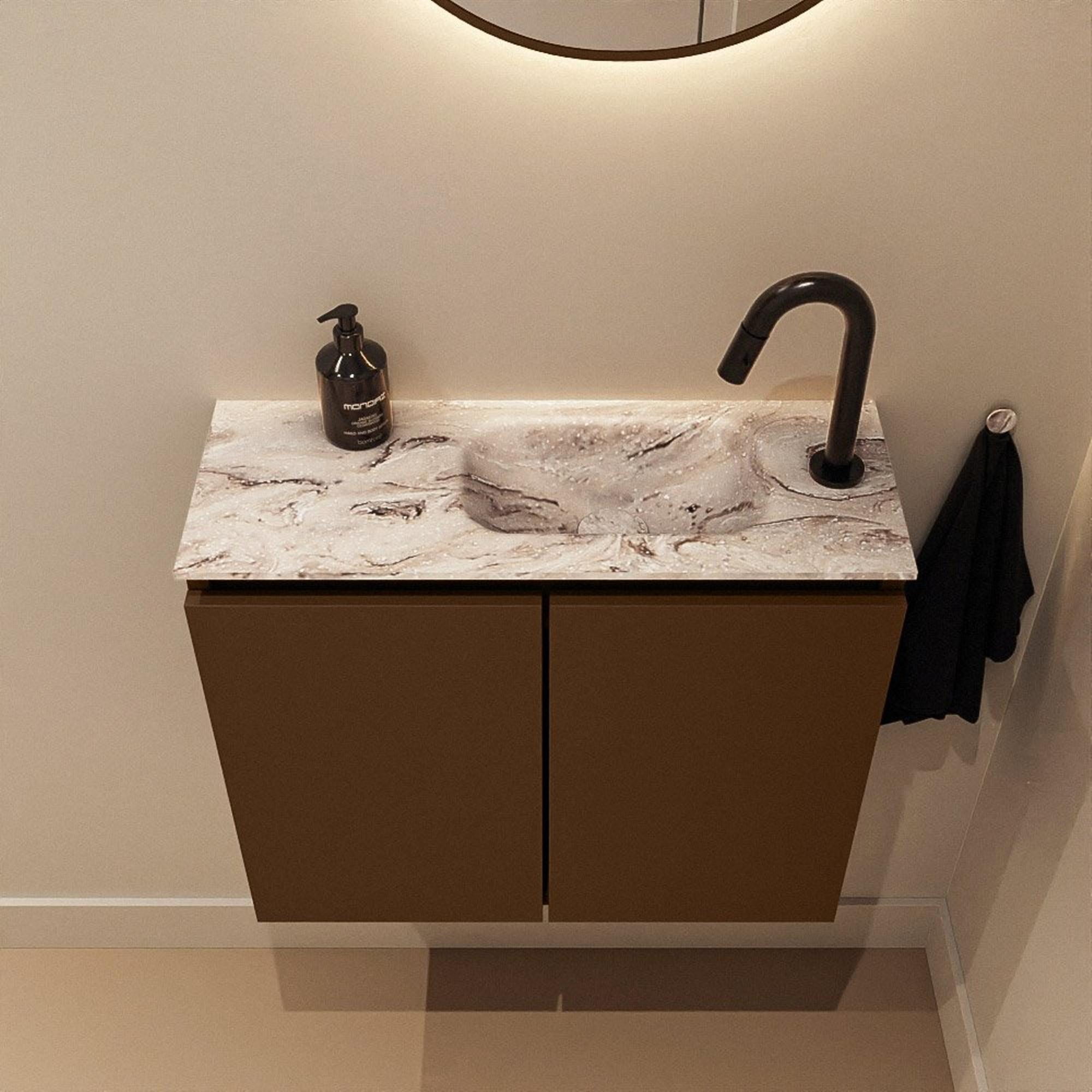 MONDIAZ TURE-DLUX 60cm toiletmeubel Rust. EDEN wastafel Glace positie rechts. Met 1 kraangat.