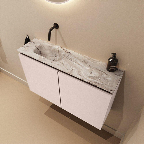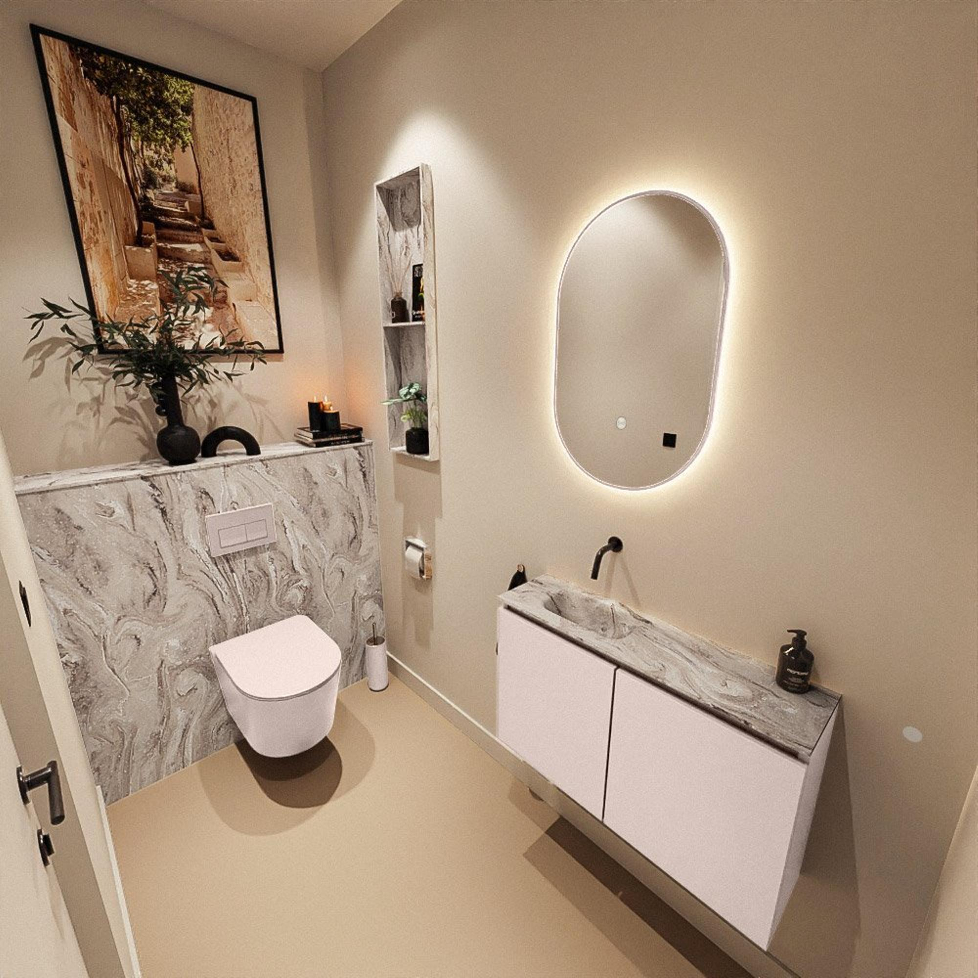 MONDIAZ TURE-DLUX 80cm toiletmeubel Rosee. EDEN wastafel Glace positie links. Zonder kraangat.