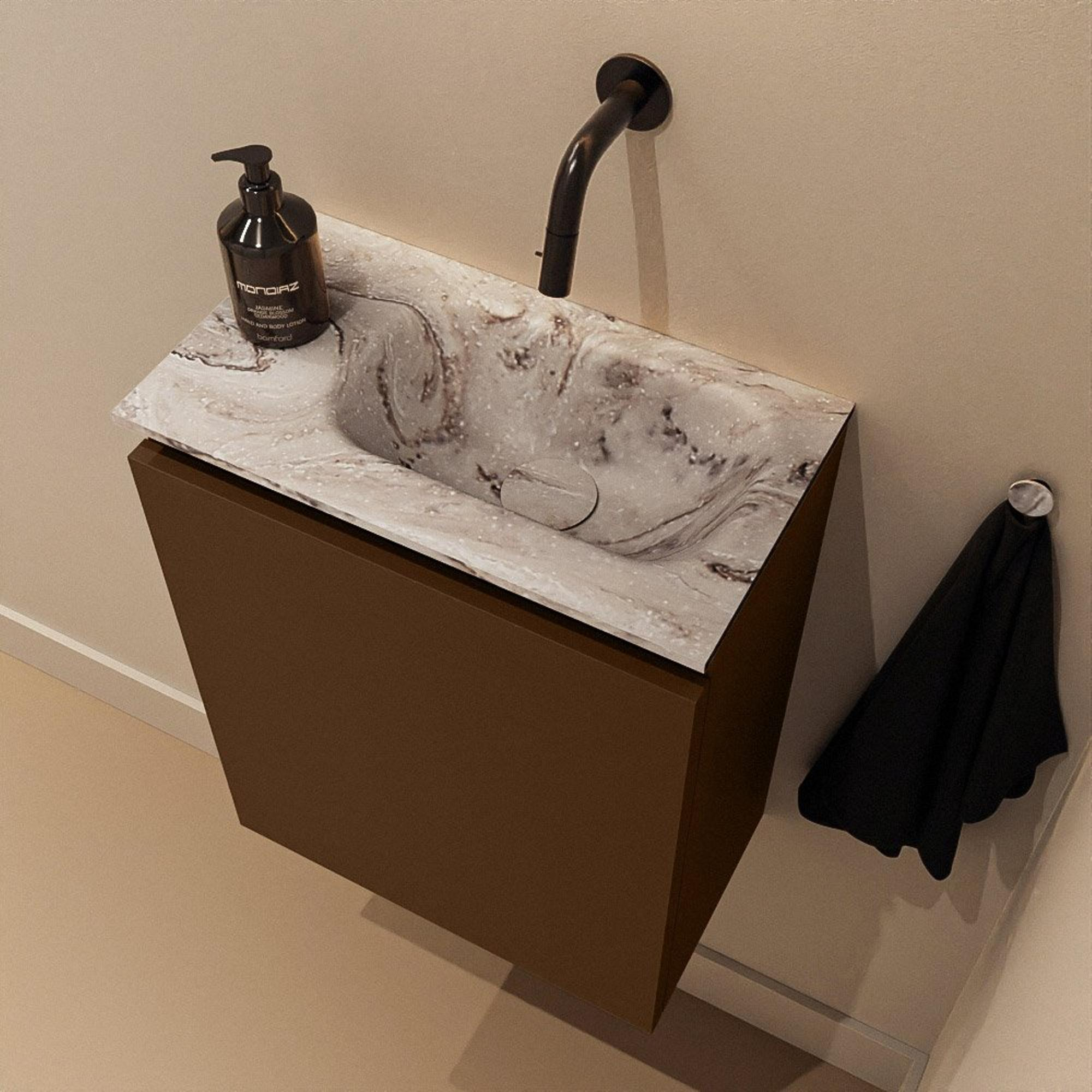 MONDIAZ TURE-DLUX 40cm toiletmeubel Rust. EDEN wastafel Glace positie rechts. Zonder kraangat.