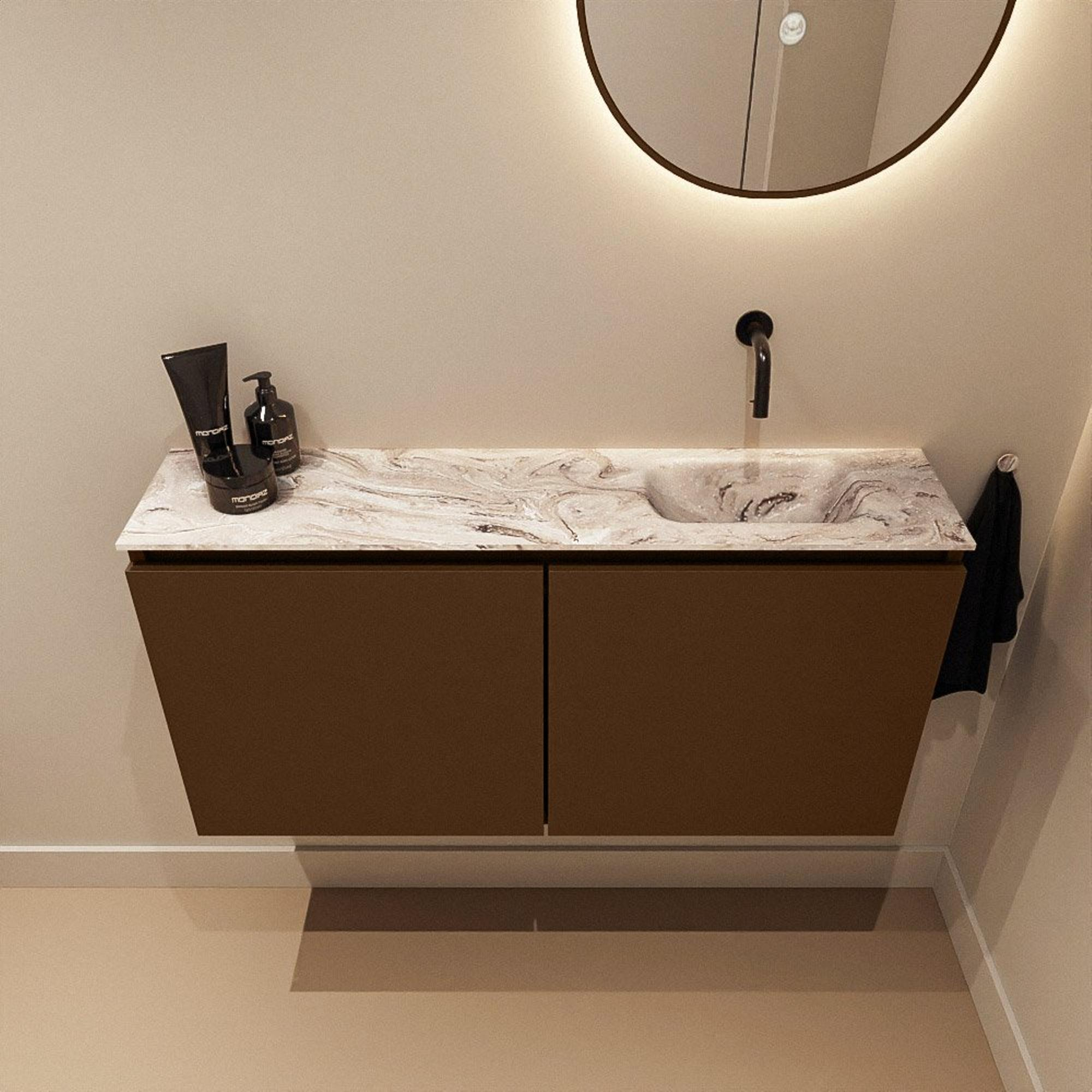 MONDIAZ TURE-DLUX 100cm toiletmeubel Rust. EDEN wastafel Glace positie rechts. Zonder kraangat.