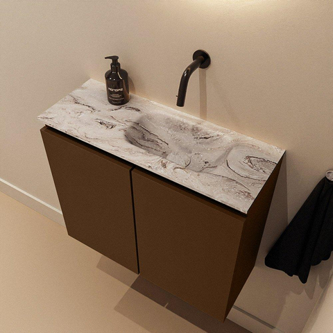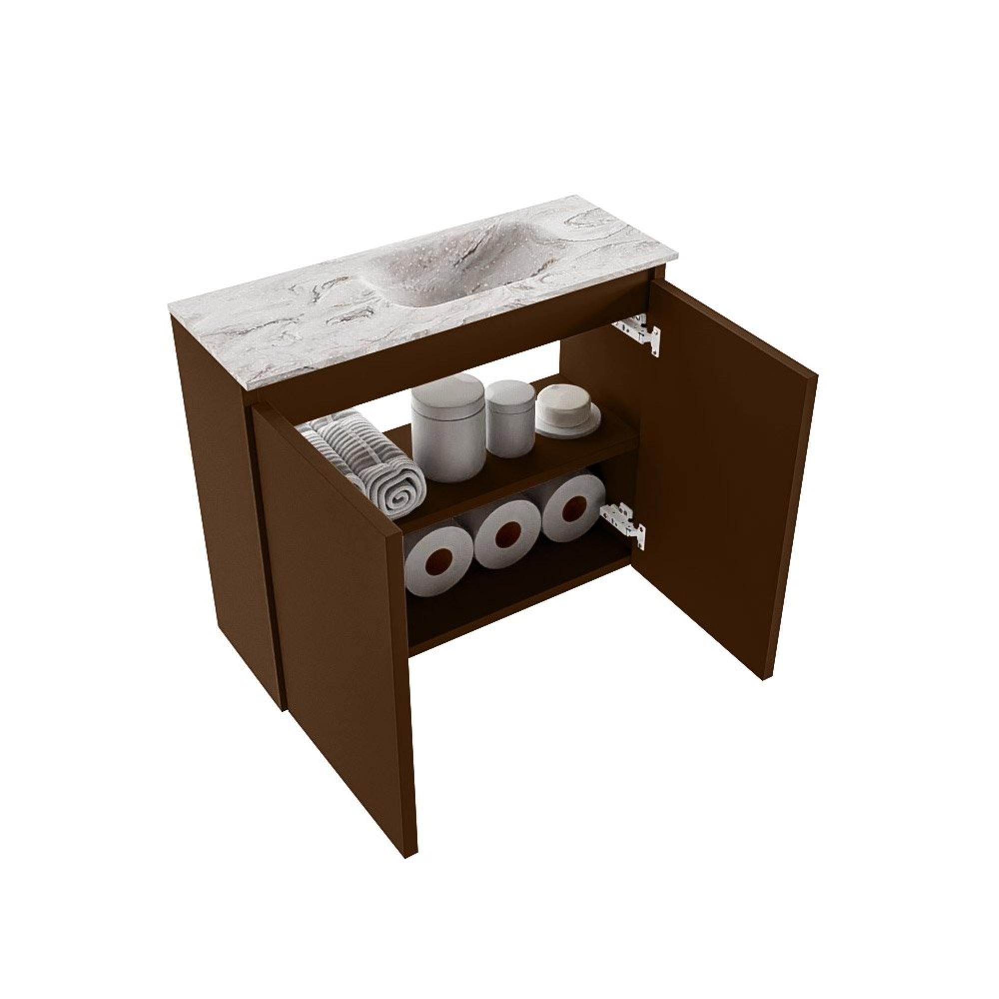 MONDIAZ TURE-DLUX 60cm toiletmeubel Rust. EDEN wastafel Glace positie rechts. Zonder kraangat.