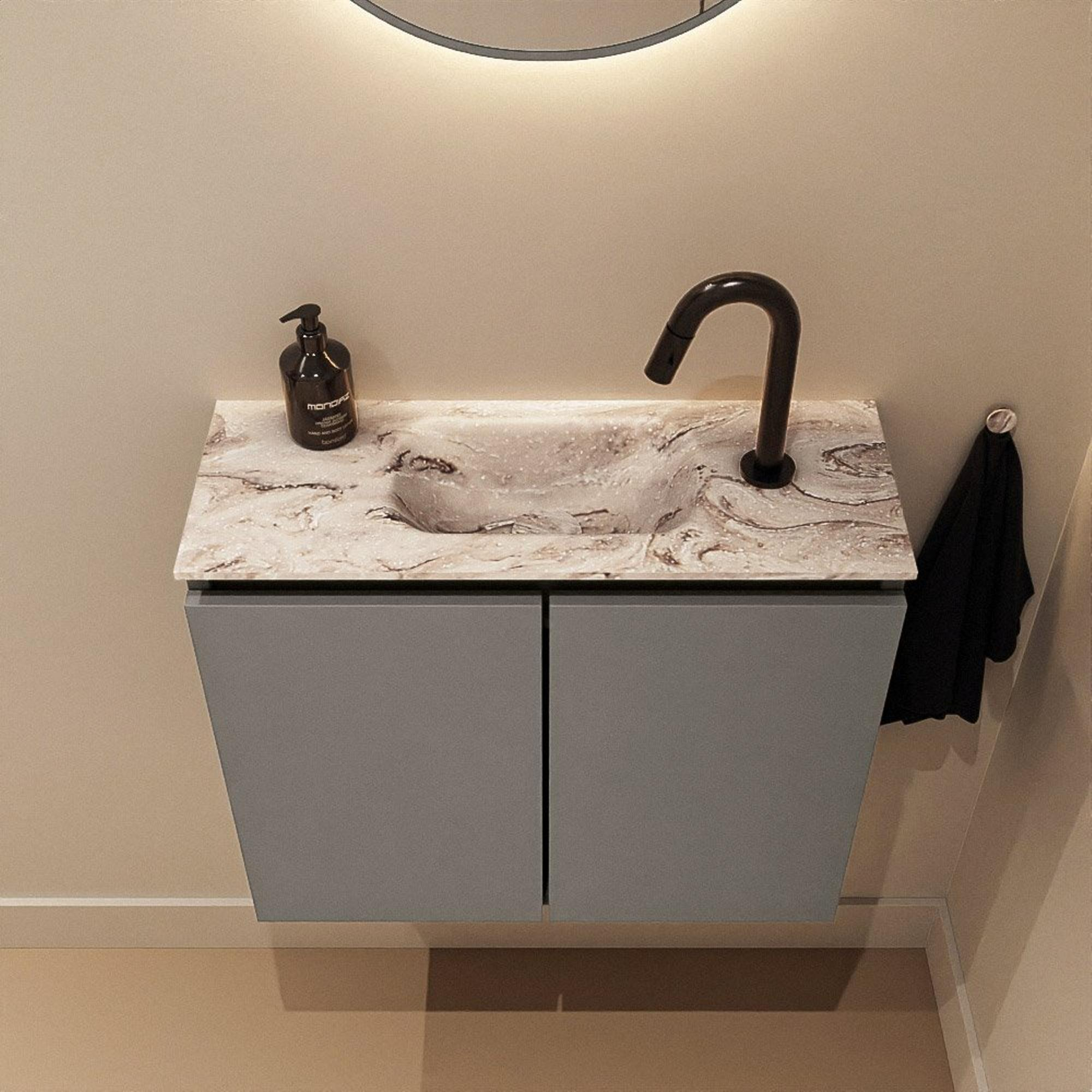 MONDIAZ TURE-DLUX 60cm toiletmeubel Smoke. EDEN wastafel Glace positie midden. Met 1 kraangat.