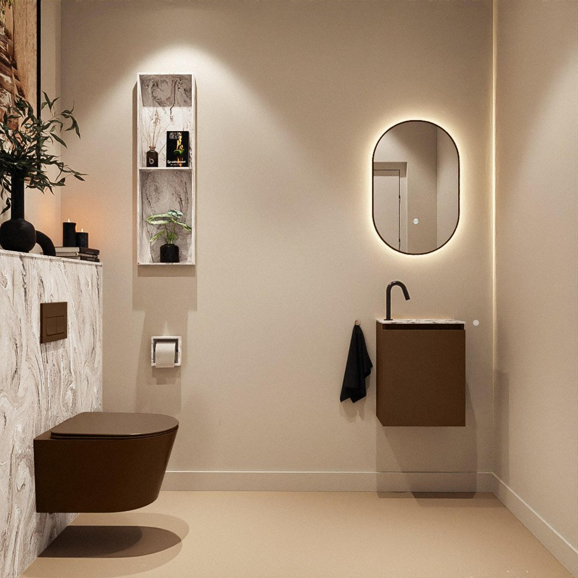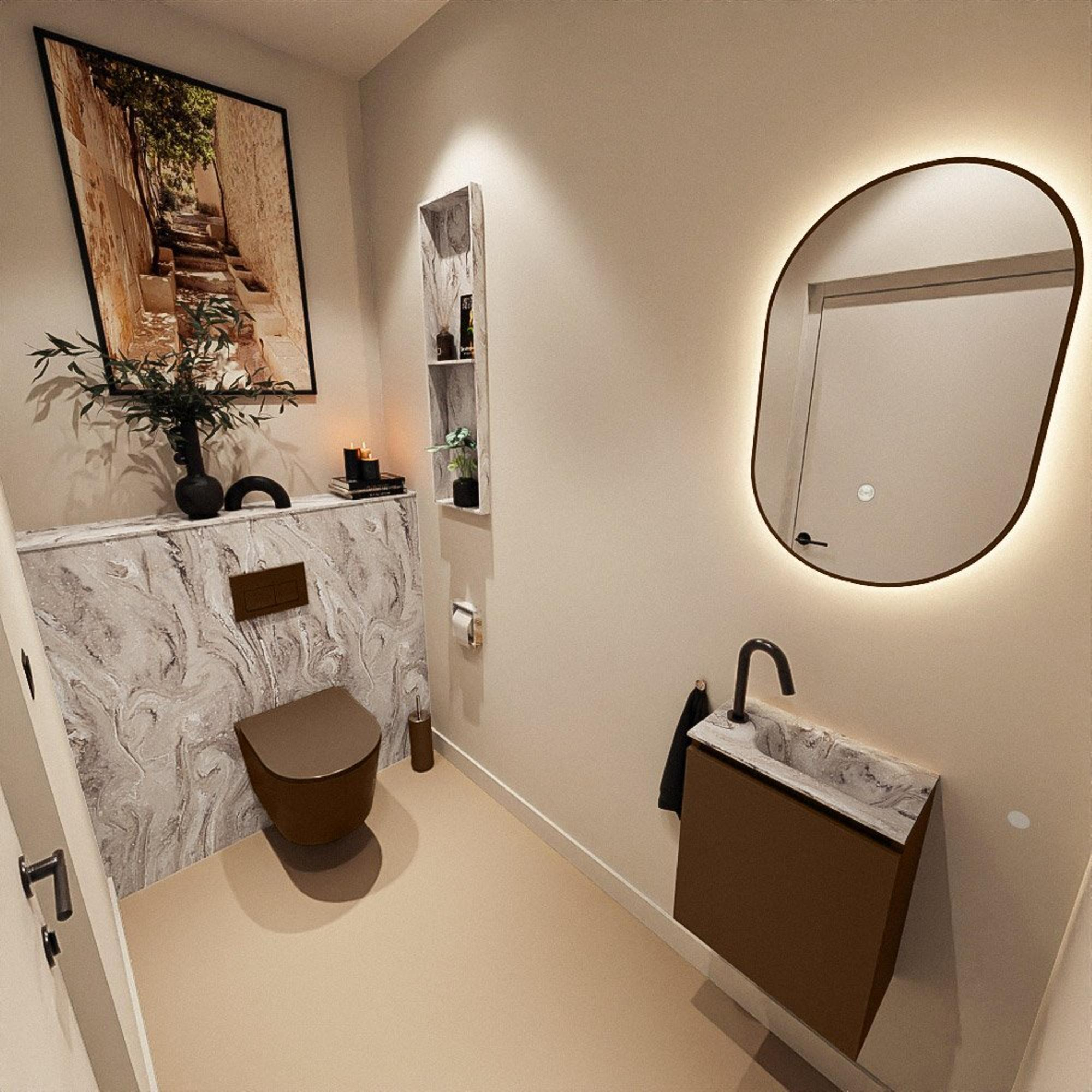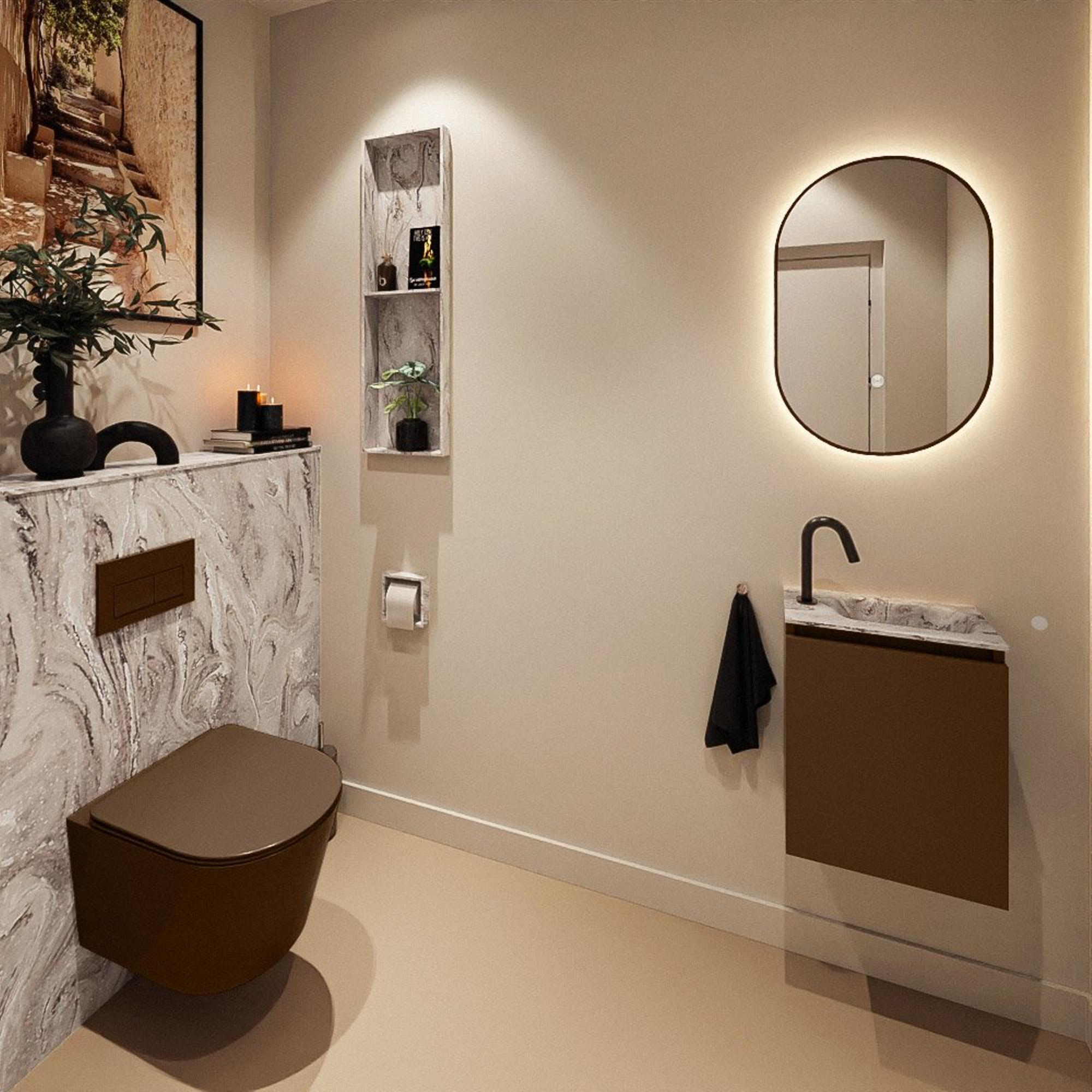 MONDIAZ TURE-DLUX 40cm toiletmeubel Rust. EDEN wastafel Glace positie rechts. Met 1 kraangat.