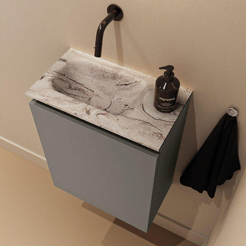 MONDIAZ TURE-DLUX 40cm toiletmeubel Smoke. EDEN wastafel Glace positie links. Zonder kraangat.