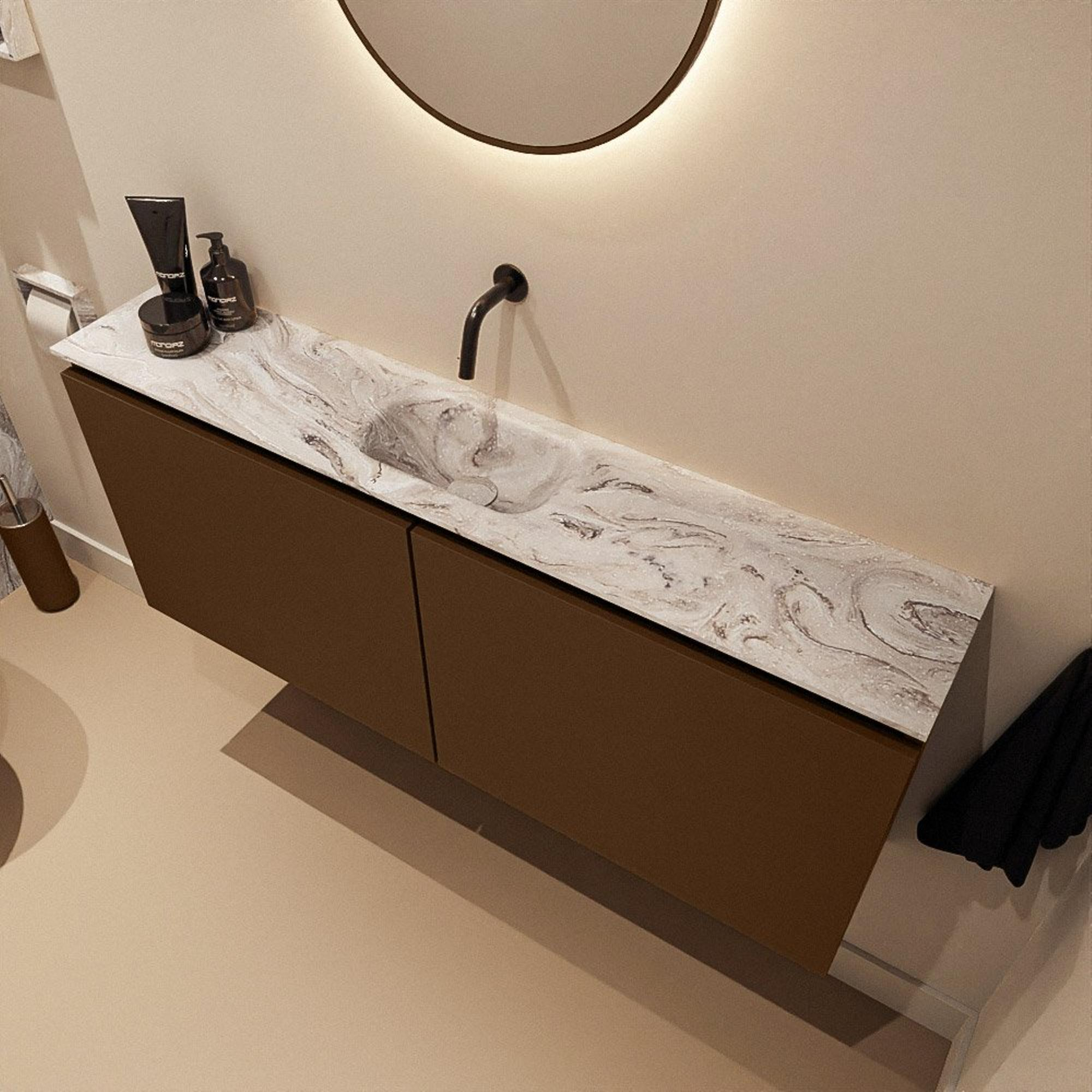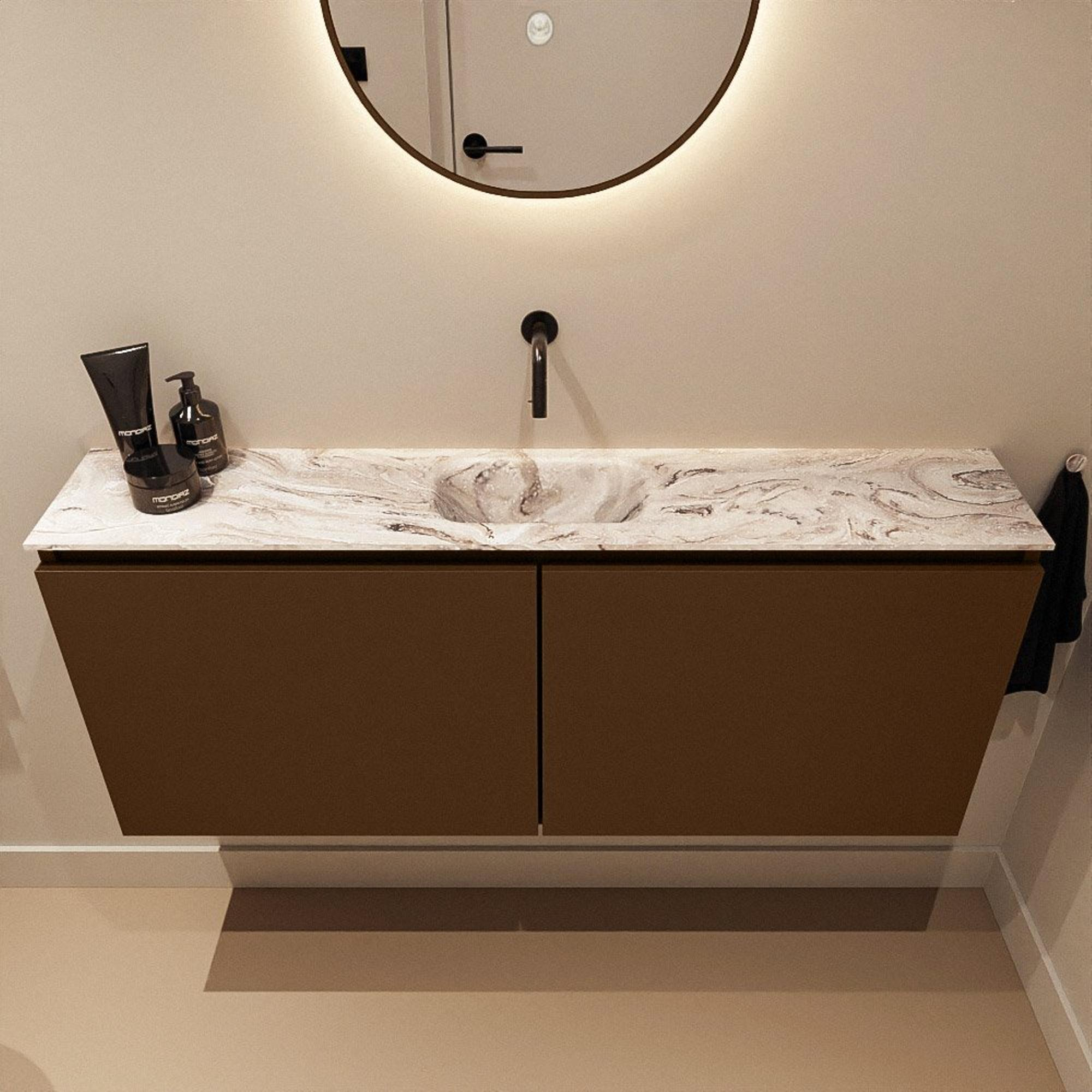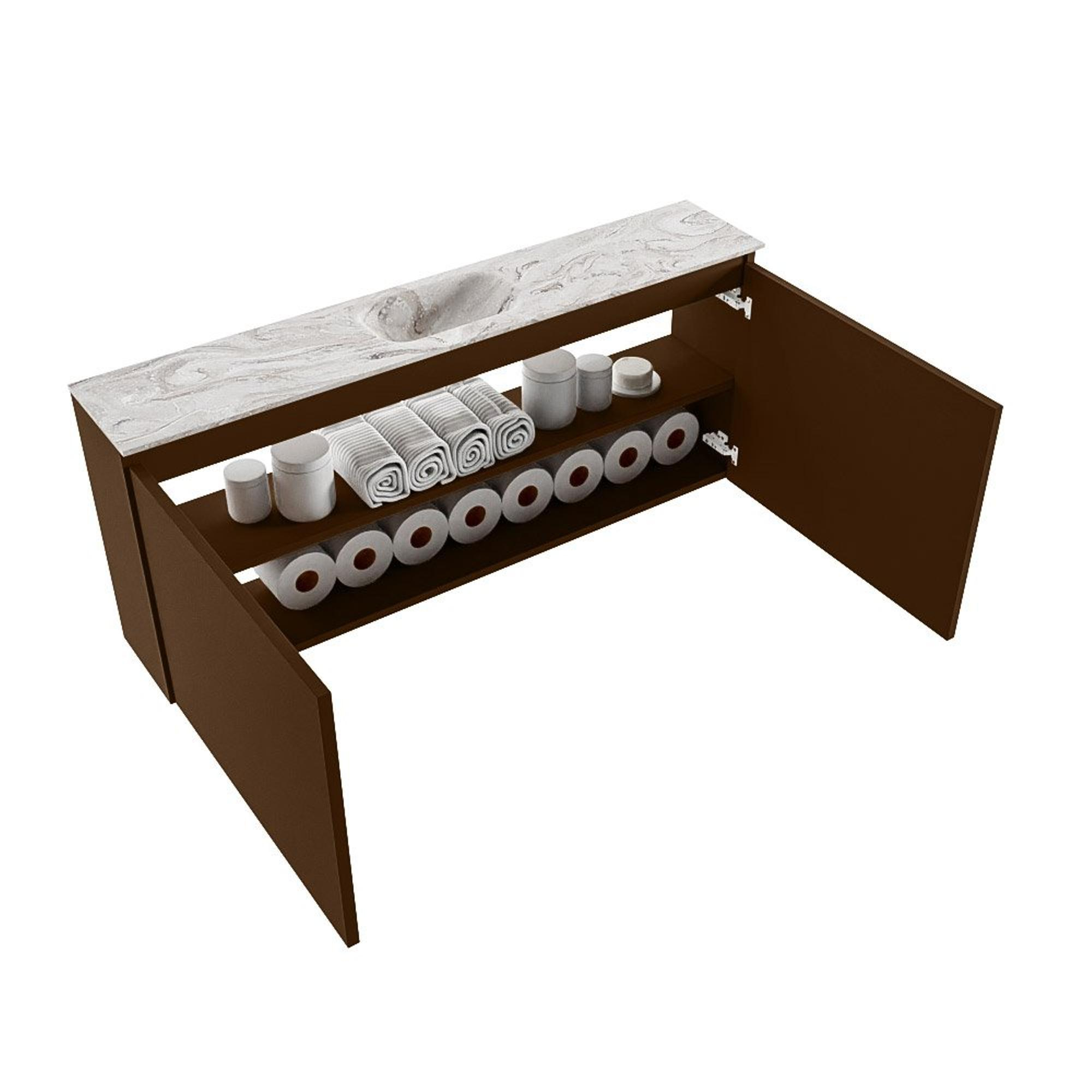 MONDIAZ TURE-DLUX 120cm toiletmeubel Rust. EDEN wastafel Glace positie midden. Zonder kraangat.