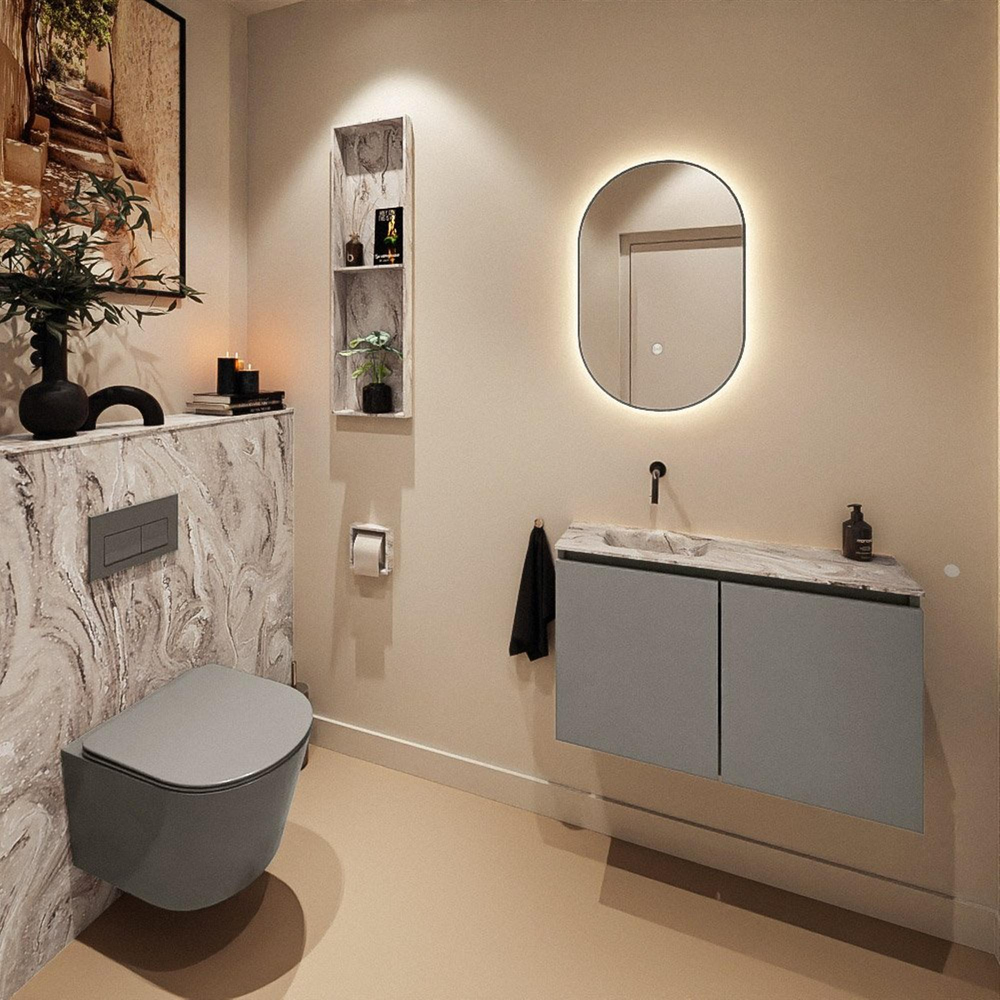 MONDIAZ TURE-DLUX 80cm toiletmeubel Smoke. EDEN wastafel Glace positie links. Zonder kraangat.