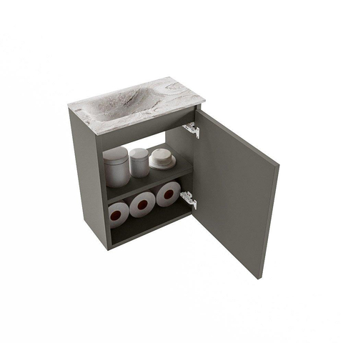 MONDIAZ TURE-DLUX 40cm toiletmeubel Smoke. EDEN wastafel Glace positie links. Met 1 kraangat.