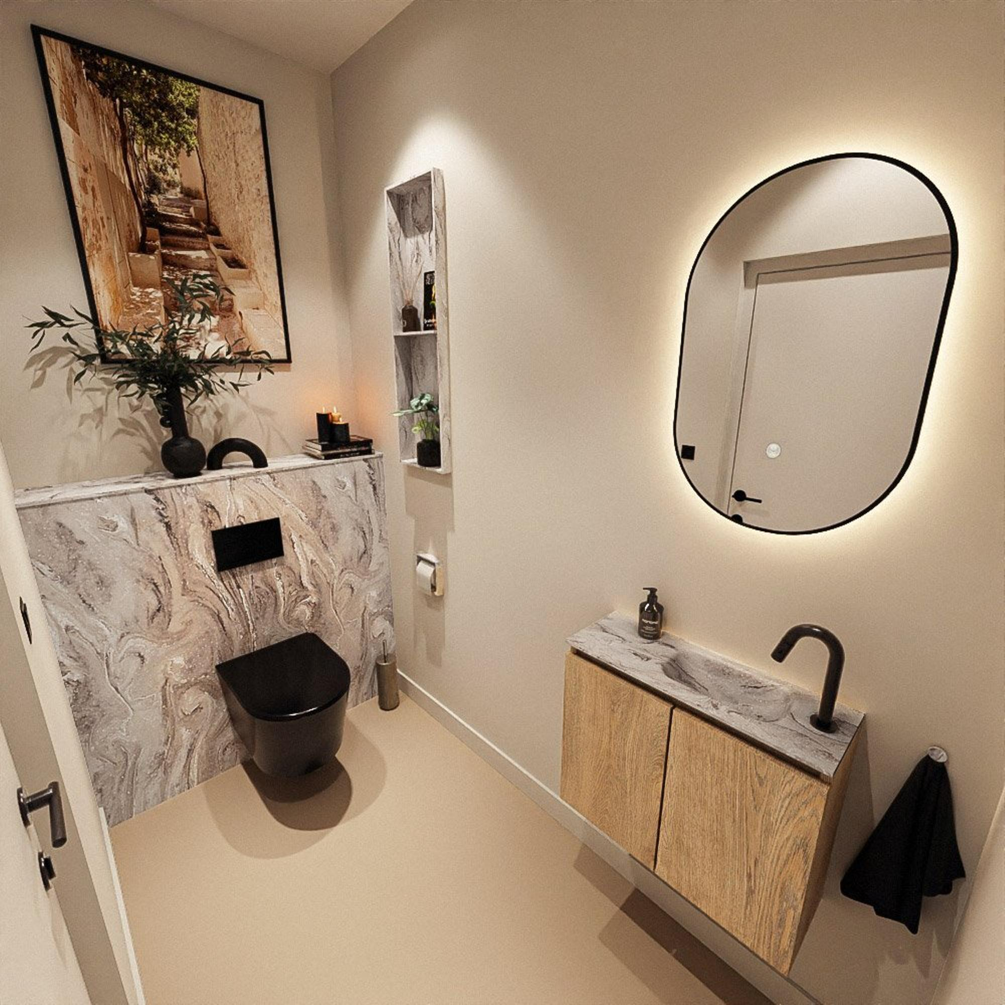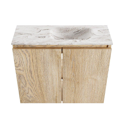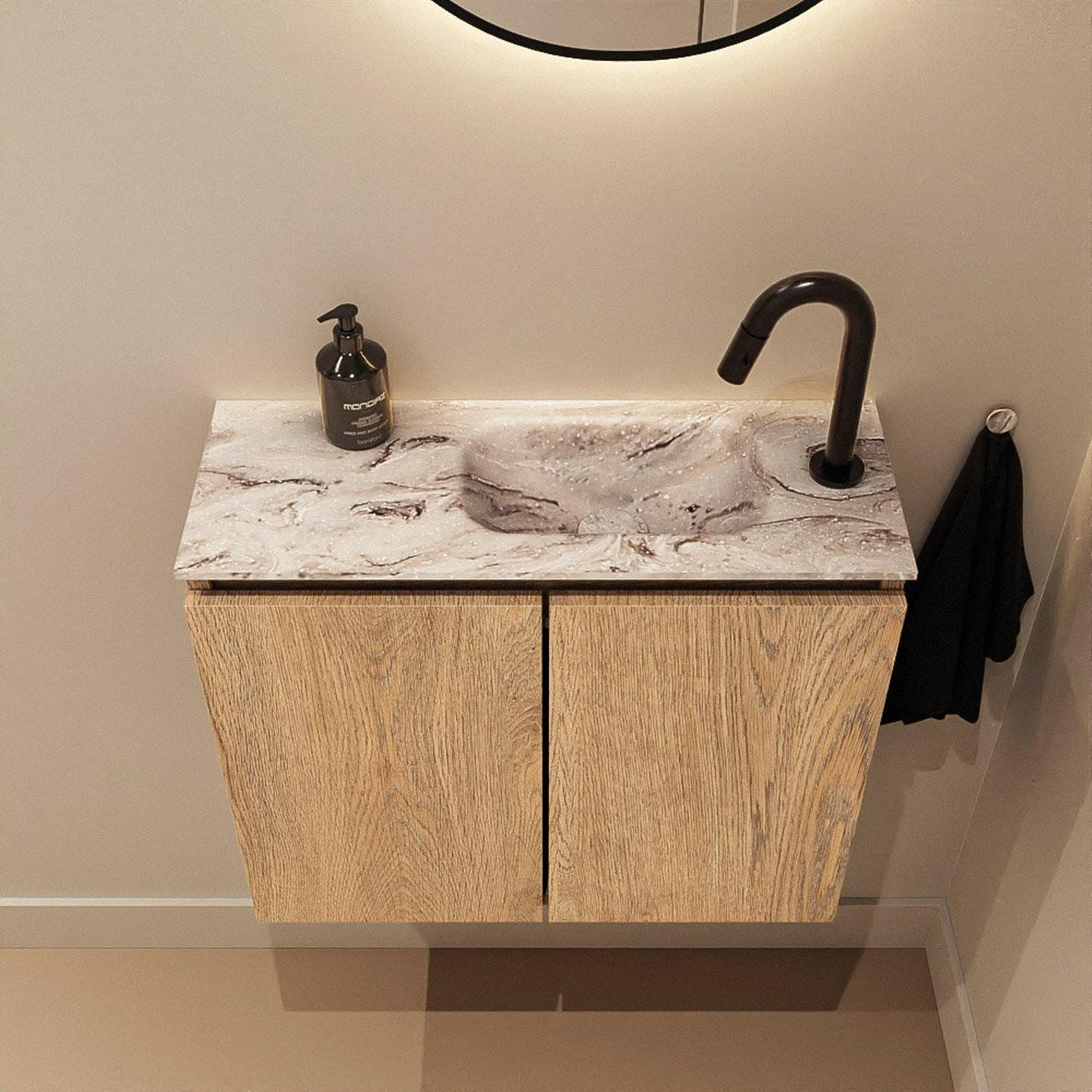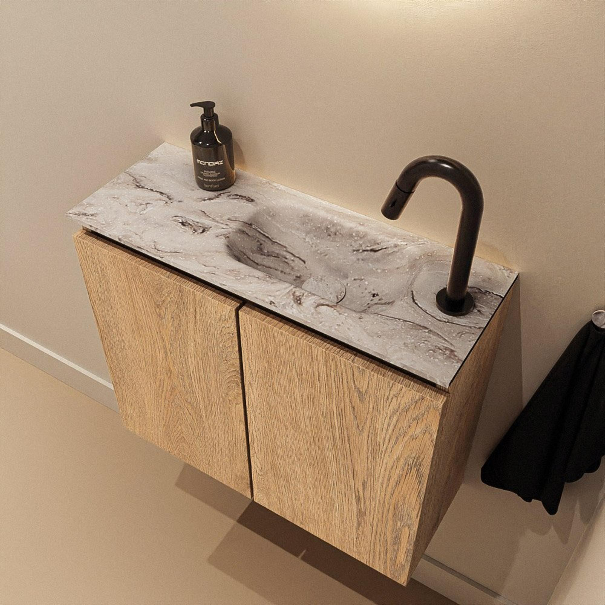 MONDIAZ TURE-DLUX 60cm toiletmeubel Washed Oak. EDEN wastafel Glace positie rechts. Met 1 kraangat.
