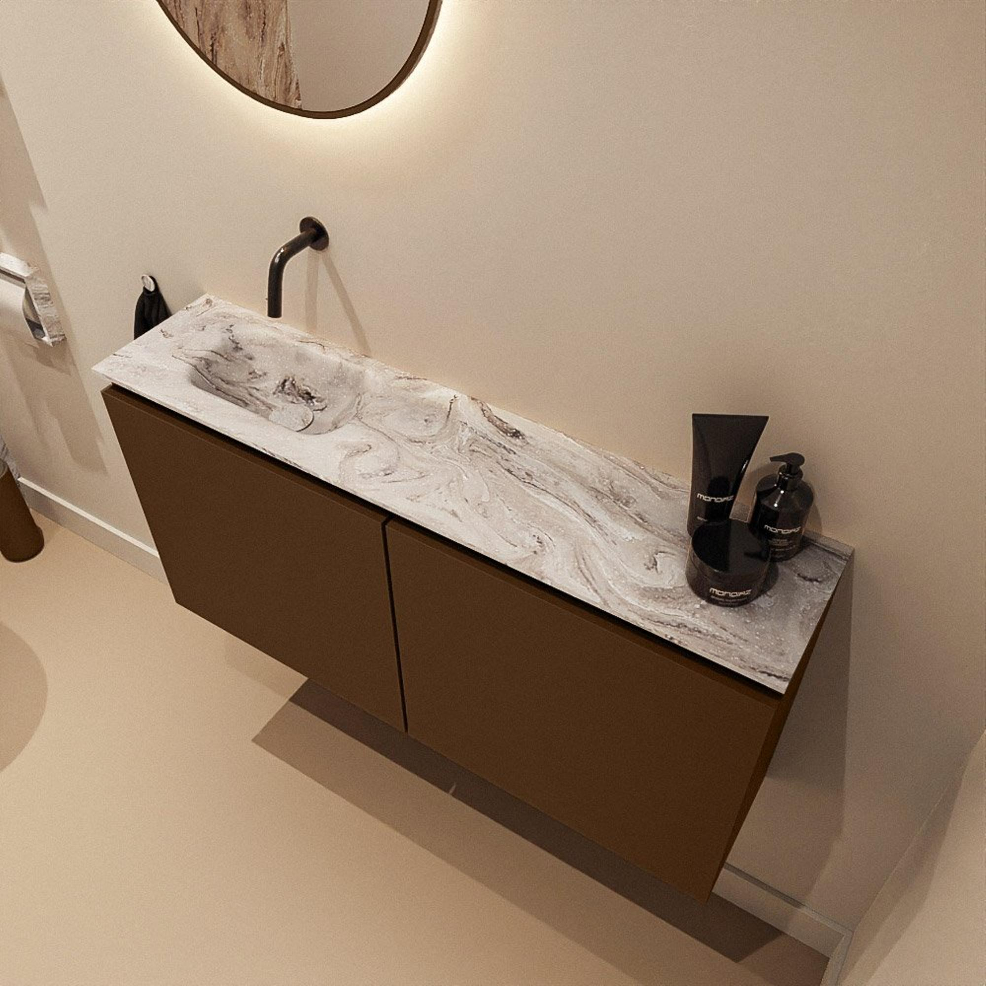 MONDIAZ TURE-DLUX 100cm toiletmeubel Rust. EDEN wastafel Glace positie links. Zonder kraangat.
