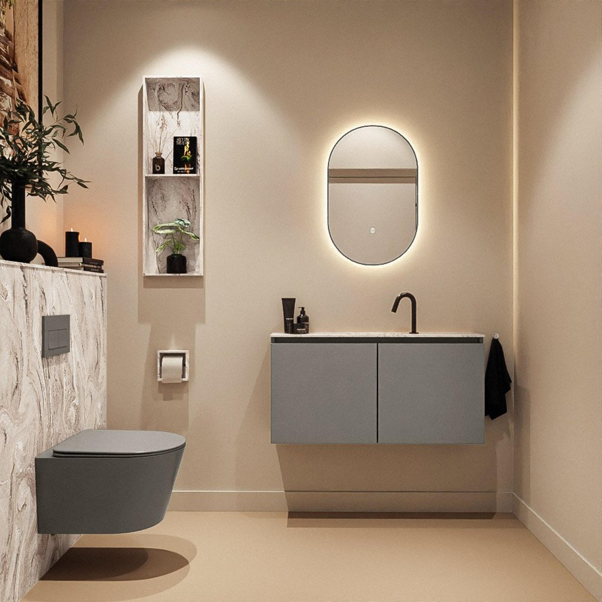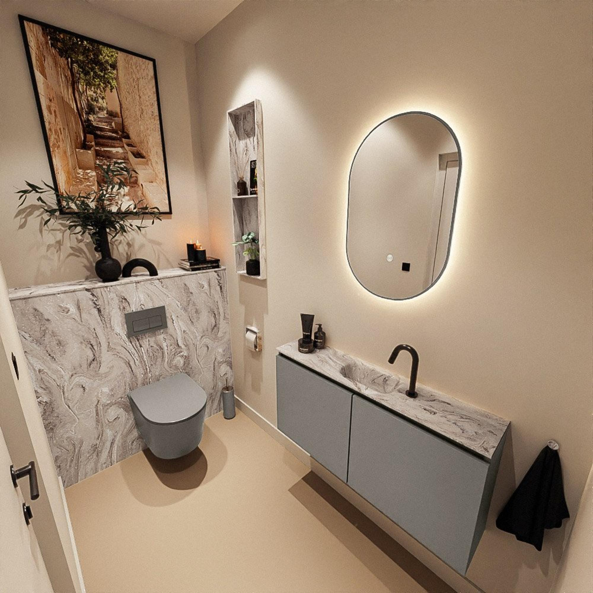 MONDIAZ TURE-DLUX 100cm toiletmeubel Smoke. EDEN wastafel Glace positie midden. Met 1 kraangat.