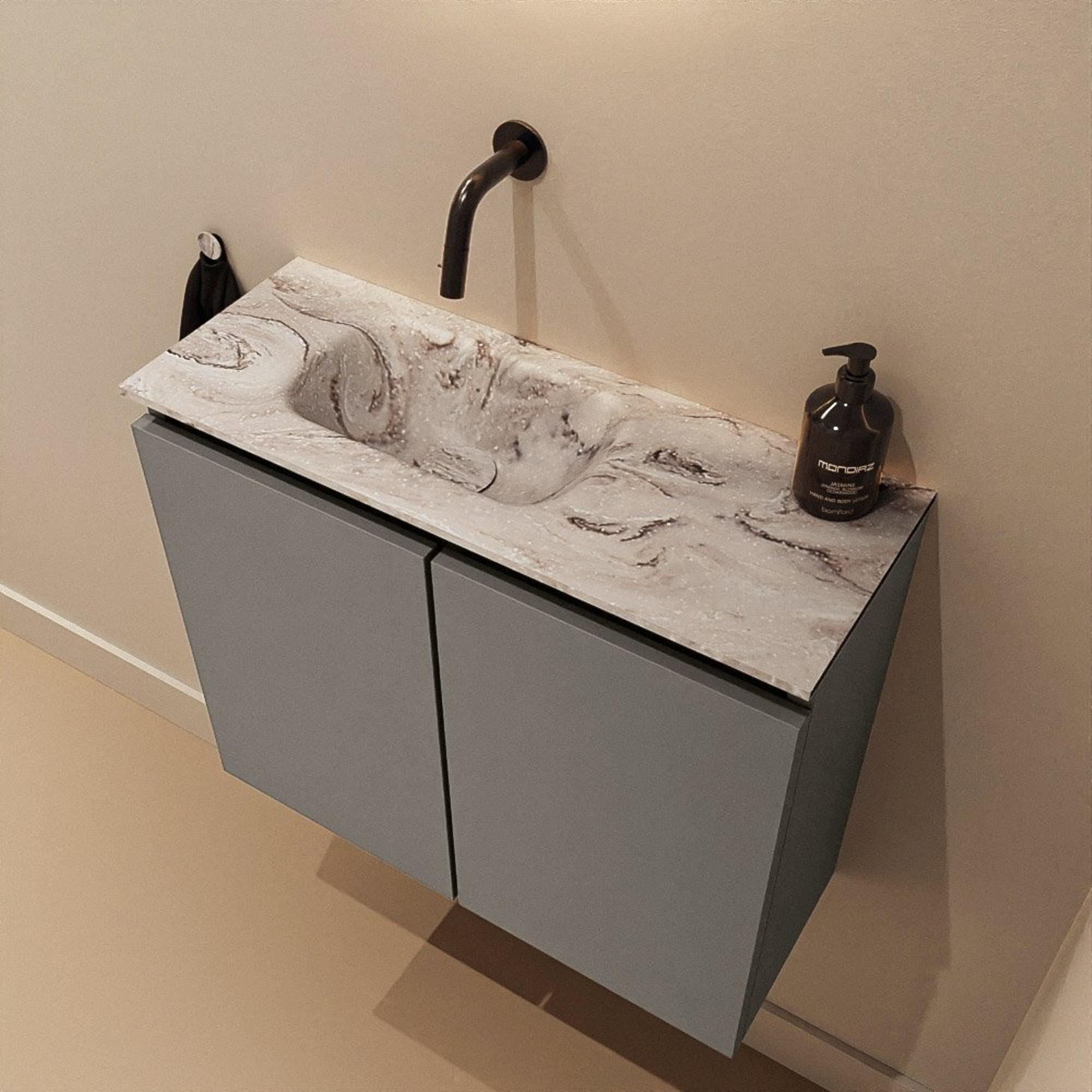 MONDIAZ TURE-DLUX 60cm toiletmeubel Smoke. EDEN wastafel Glace positie links. Zonder kraangat.