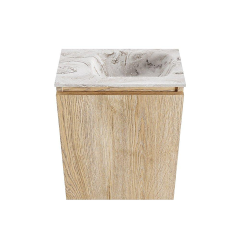 MONDIAZ TURE-DLUX 40cm toiletmeubel Washed Oak. EDEN wastafel Glace positie rechts. Zonder kraangat.
