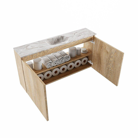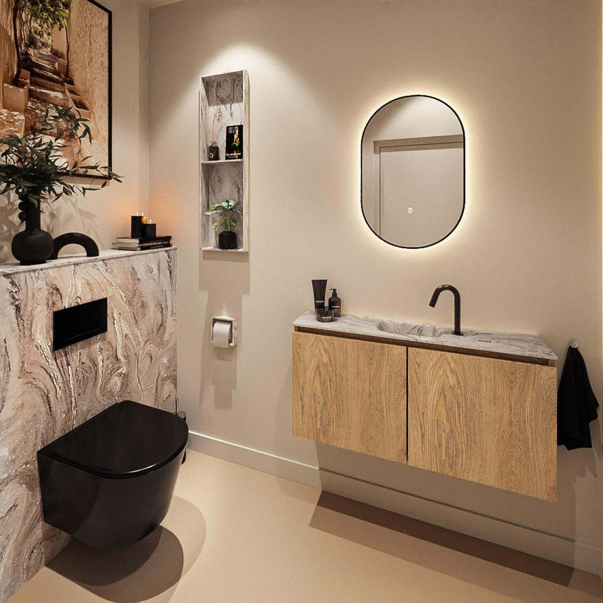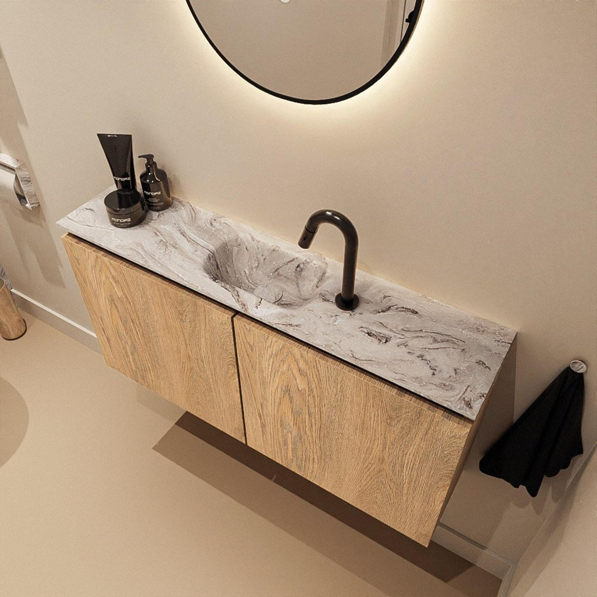 MONDIAZ TURE-DLUX 100cm toiletmeubel Washed Oak. EDEN wastafel Glace positie midden. Met 1 kraangat.