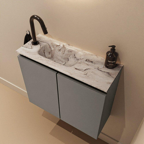 MONDIAZ TURE-DLUX 60cm toiletmeubel Smoke. EDEN wastafel Glace positie links. Met 1 kraangat.