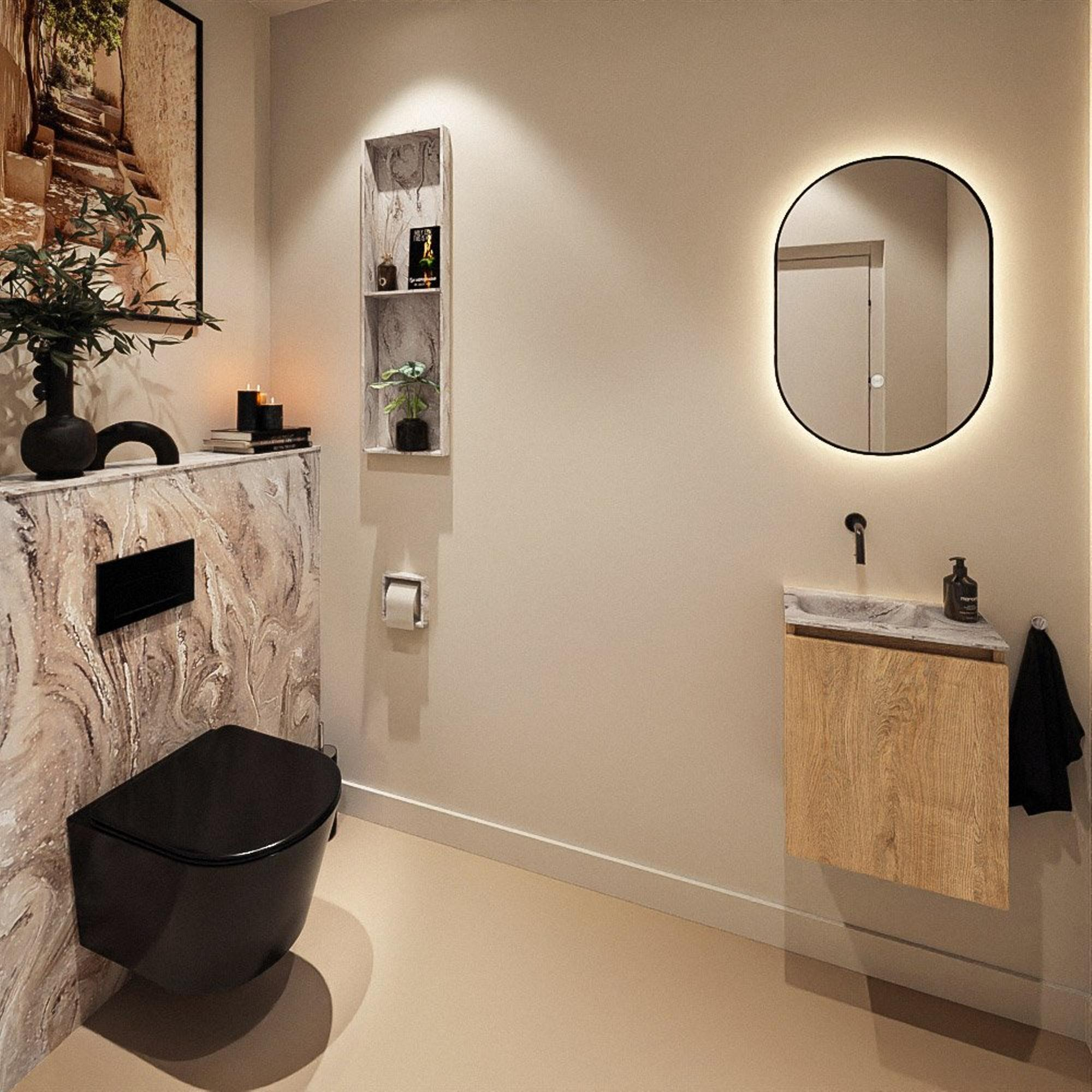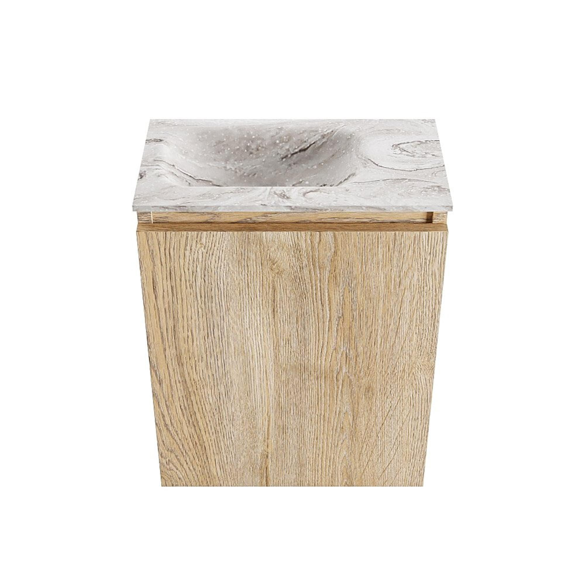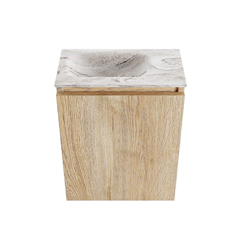 MONDIAZ TURE-DLUX 40cm toiletmeubel Washed Oak. EDEN wastafel Glace positie links. Zonder kraangat.