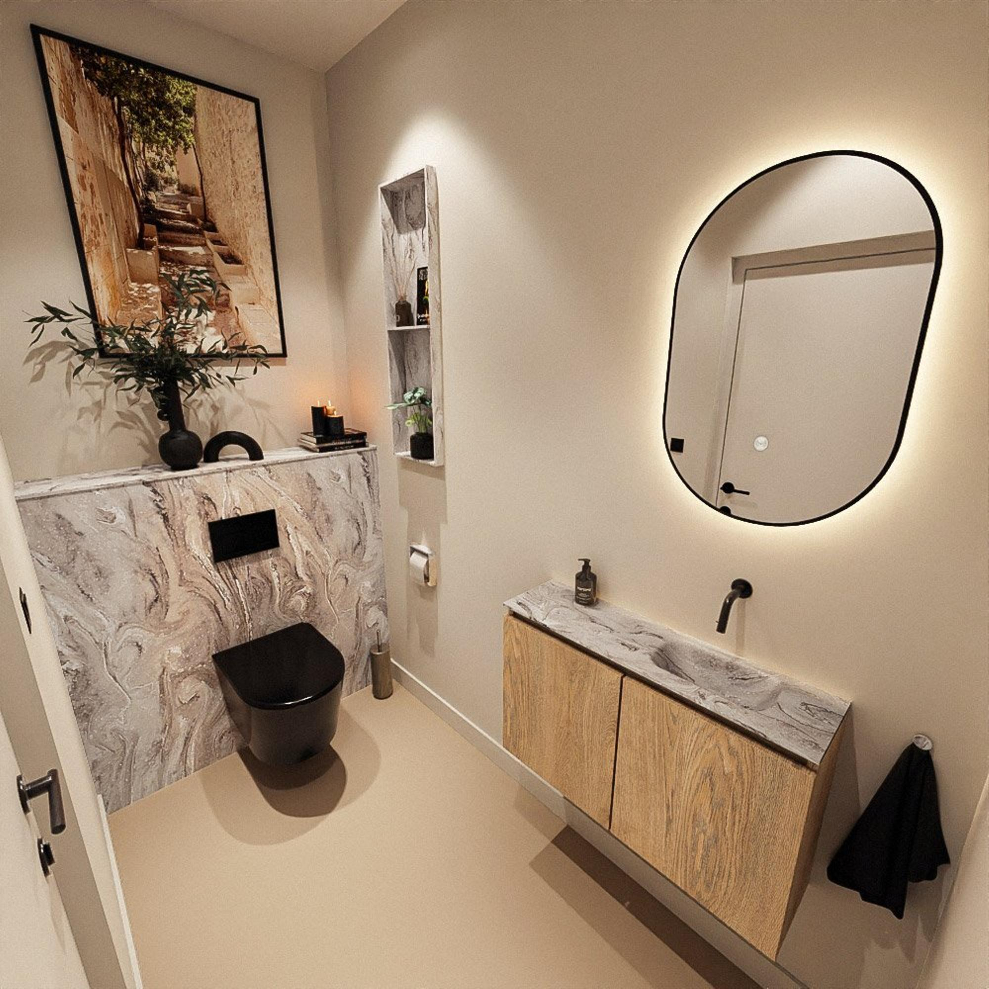 MONDIAZ TURE-DLUX 80cm toiletmeubel Washed Oak. EDEN wastafel Glace positie rechts. Zonder kraangat.