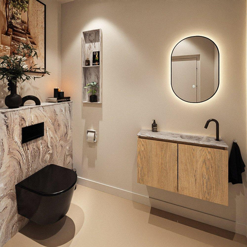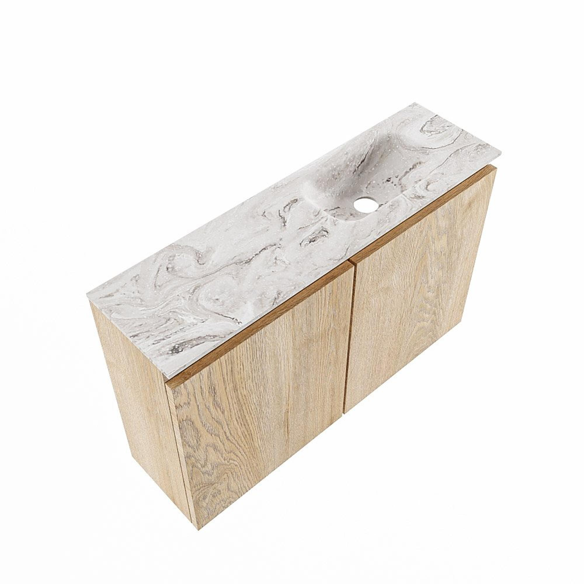 MONDIAZ TURE-DLUX 80cm toiletmeubel Washed Oak. EDEN wastafel Glace positie rechts. Met 1 kraangat.