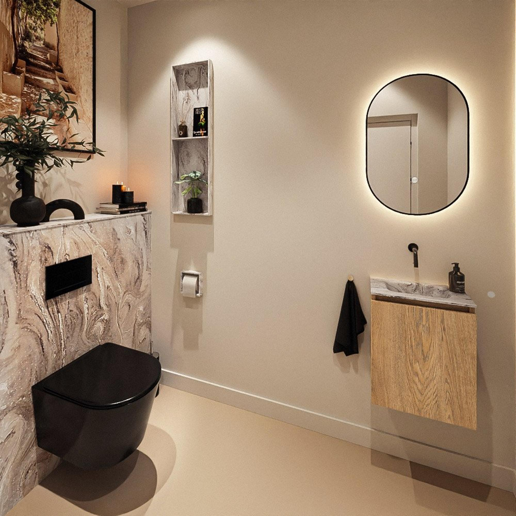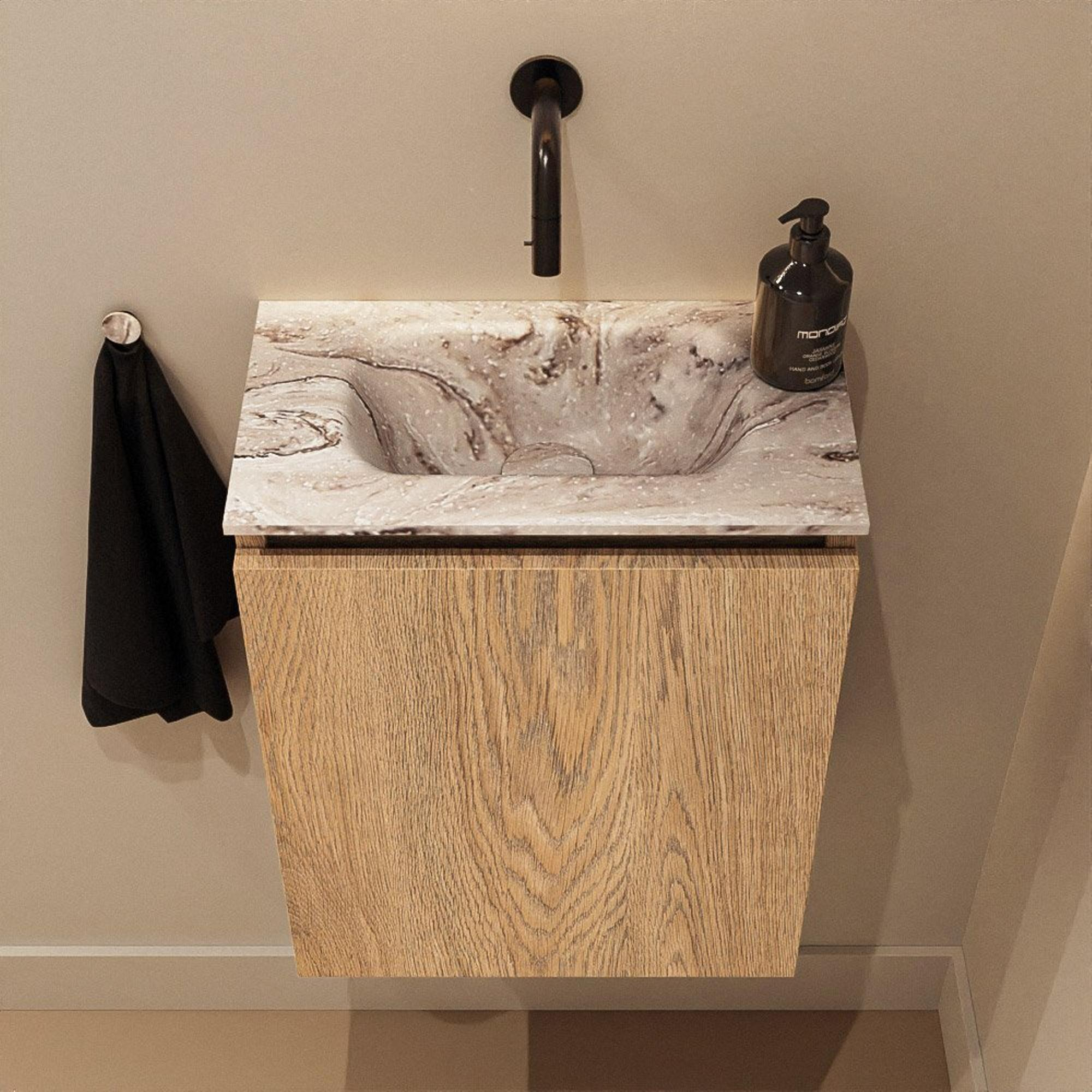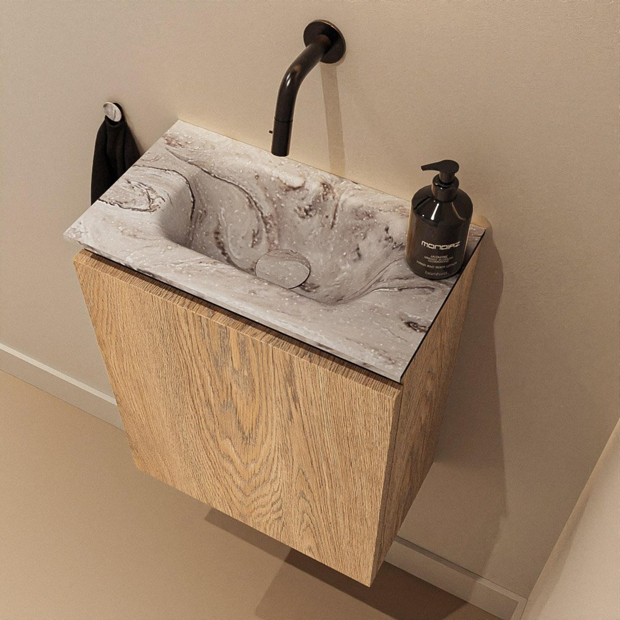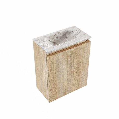 MONDIAZ TURE-DLUX 40cm toiletmeubel Washed Oak. EDEN wastafel Glace positie midden. Zonder kraangat.