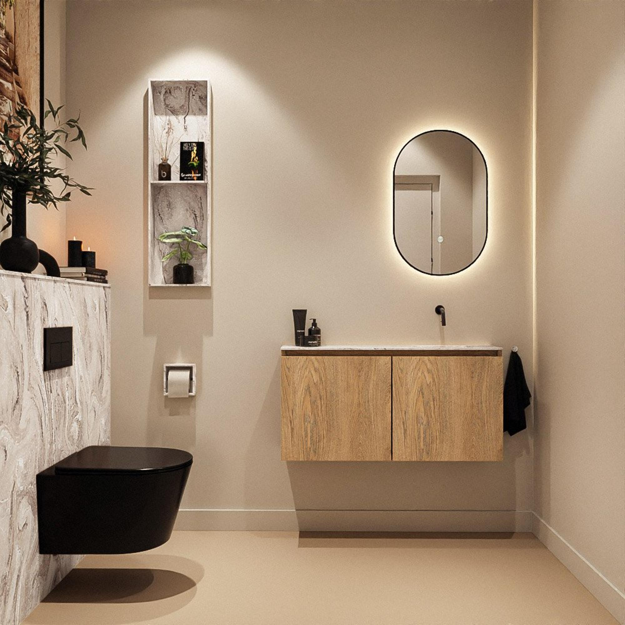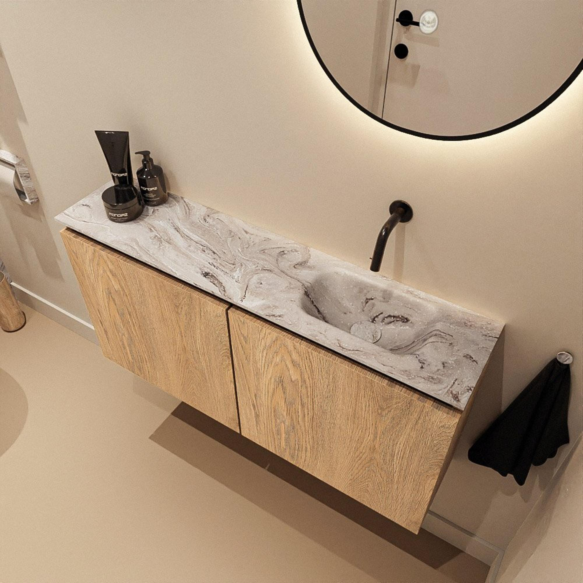 MONDIAZ TURE-DLUX 100cm toiletmeubel Washed Oak. EDEN wastafel Glace positie rechts. Zonder kraangat.