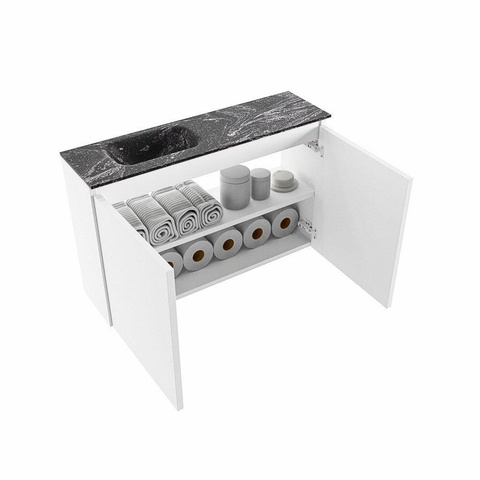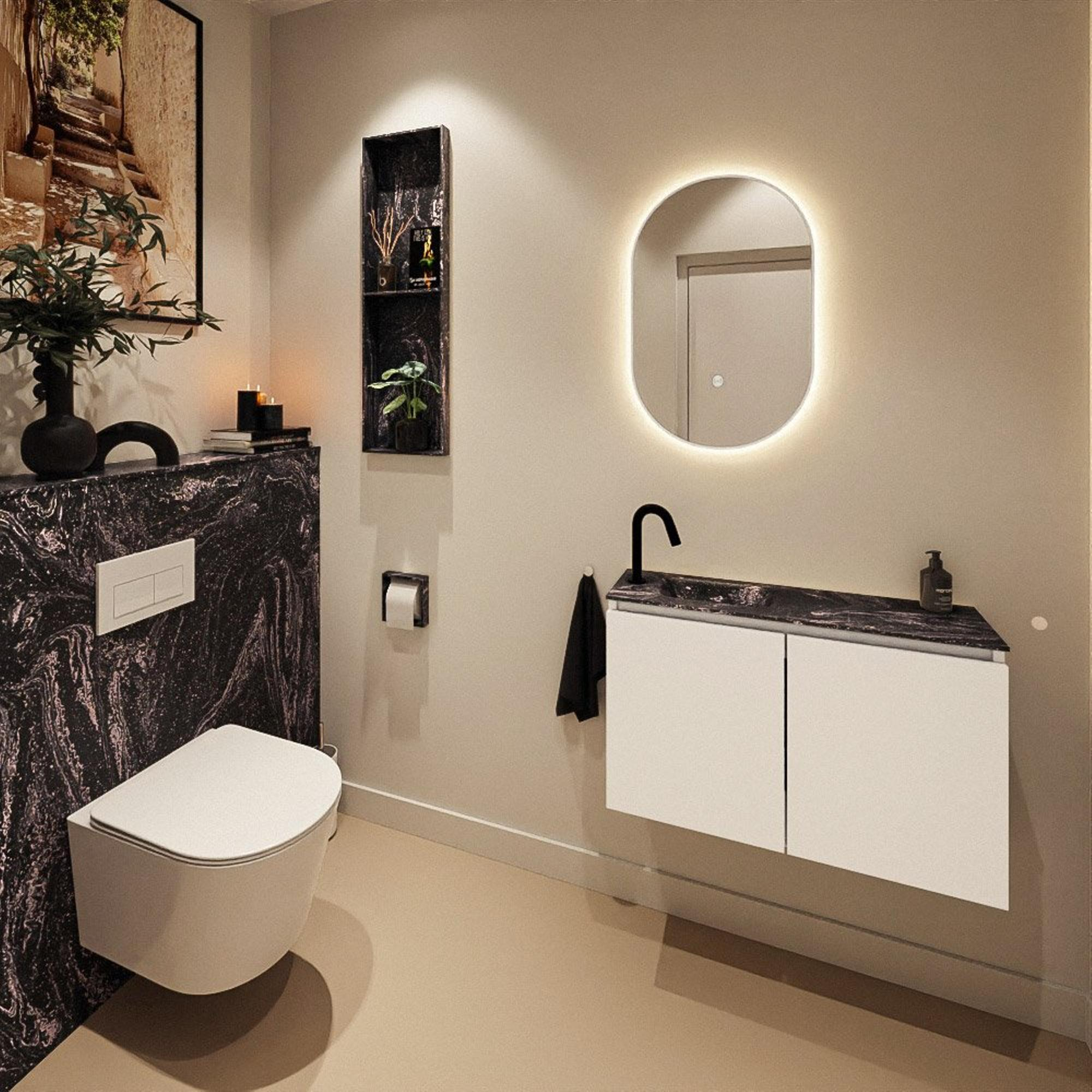 MONDIAZ TURE-DLUX 80cm toiletmeubel Talc. EDEN wastafel Lava positie links. Met 1 kraangat.