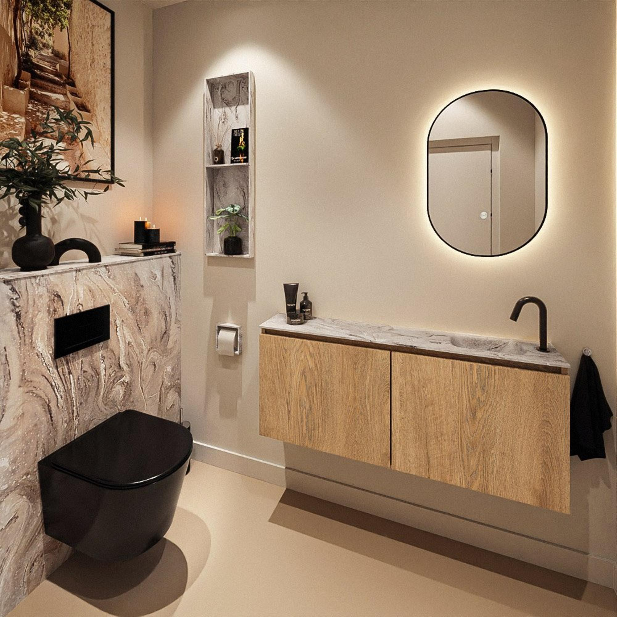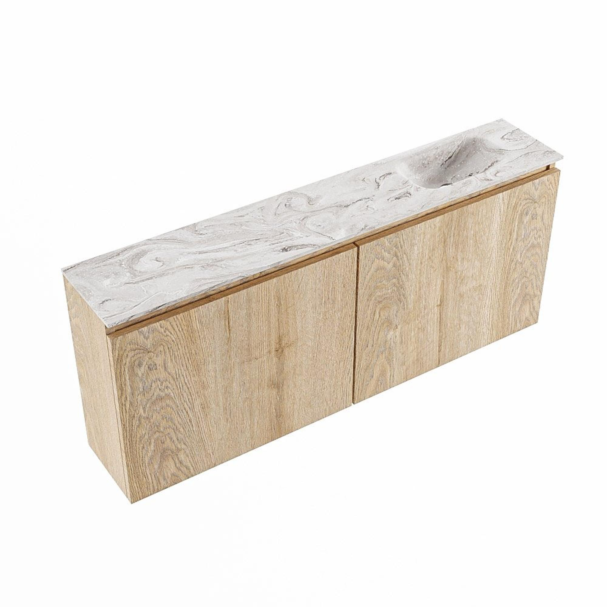 MONDIAZ TURE-DLUX 120cm toiletmeubel Washed Oak. EDEN wastafel Glace positie rechts. Met 1 kraangat.