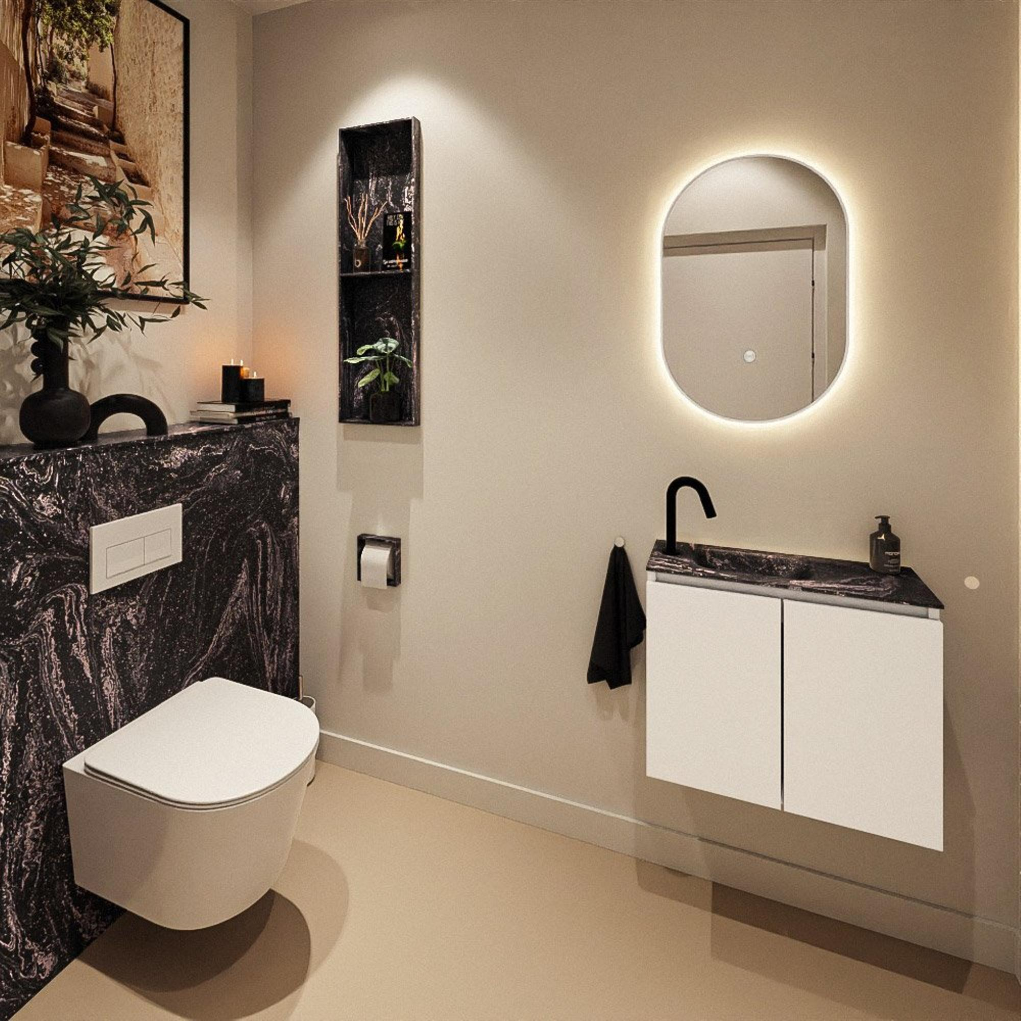 MONDIAZ TURE-DLUX 60cm toiletmeubel Talc. EDEN wastafel Lava positie links. Met 1 kraangat.