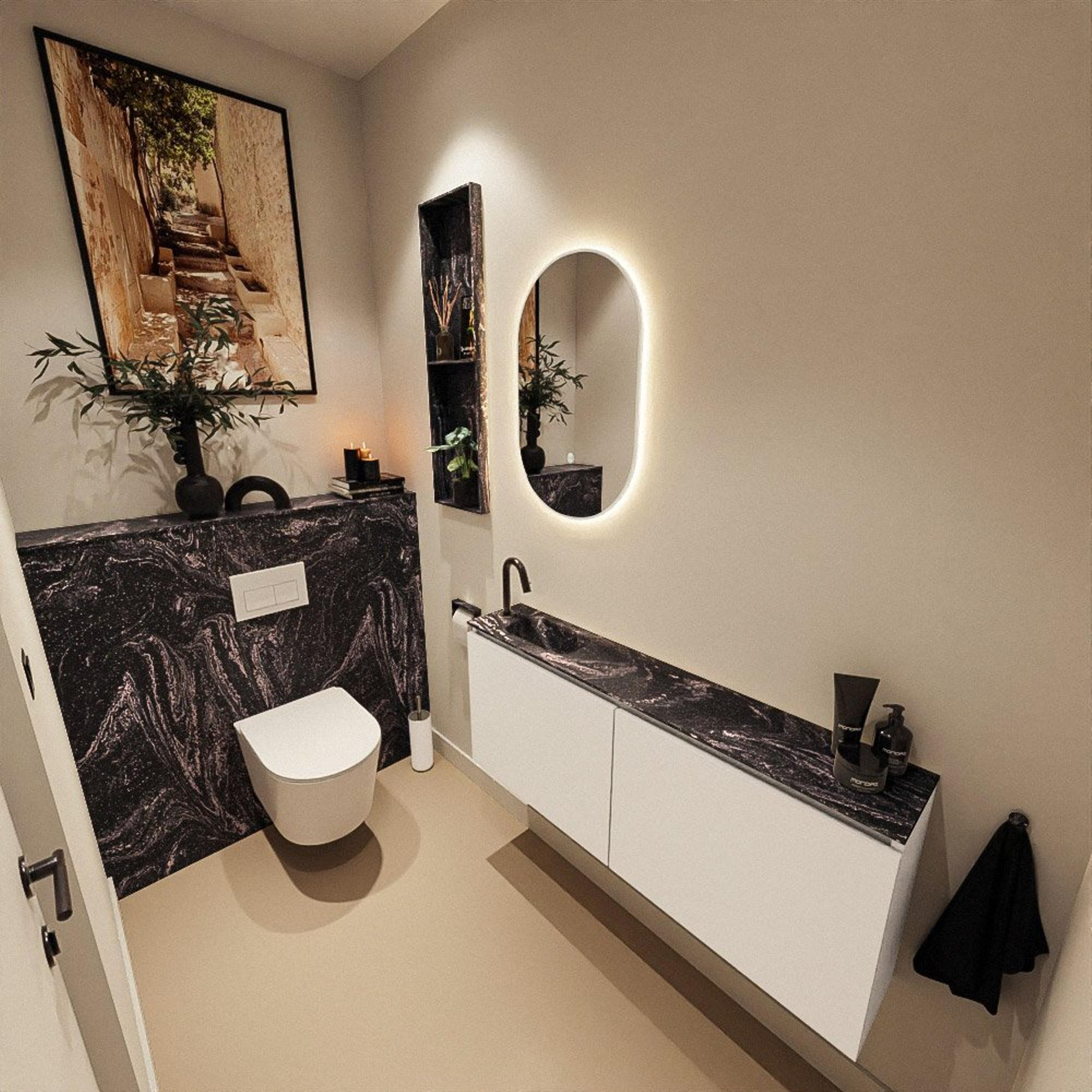 MONDIAZ TURE-DLUX 120cm toiletmeubel Talc. EDEN wastafel Lava positie links. Met 1 kraangat.