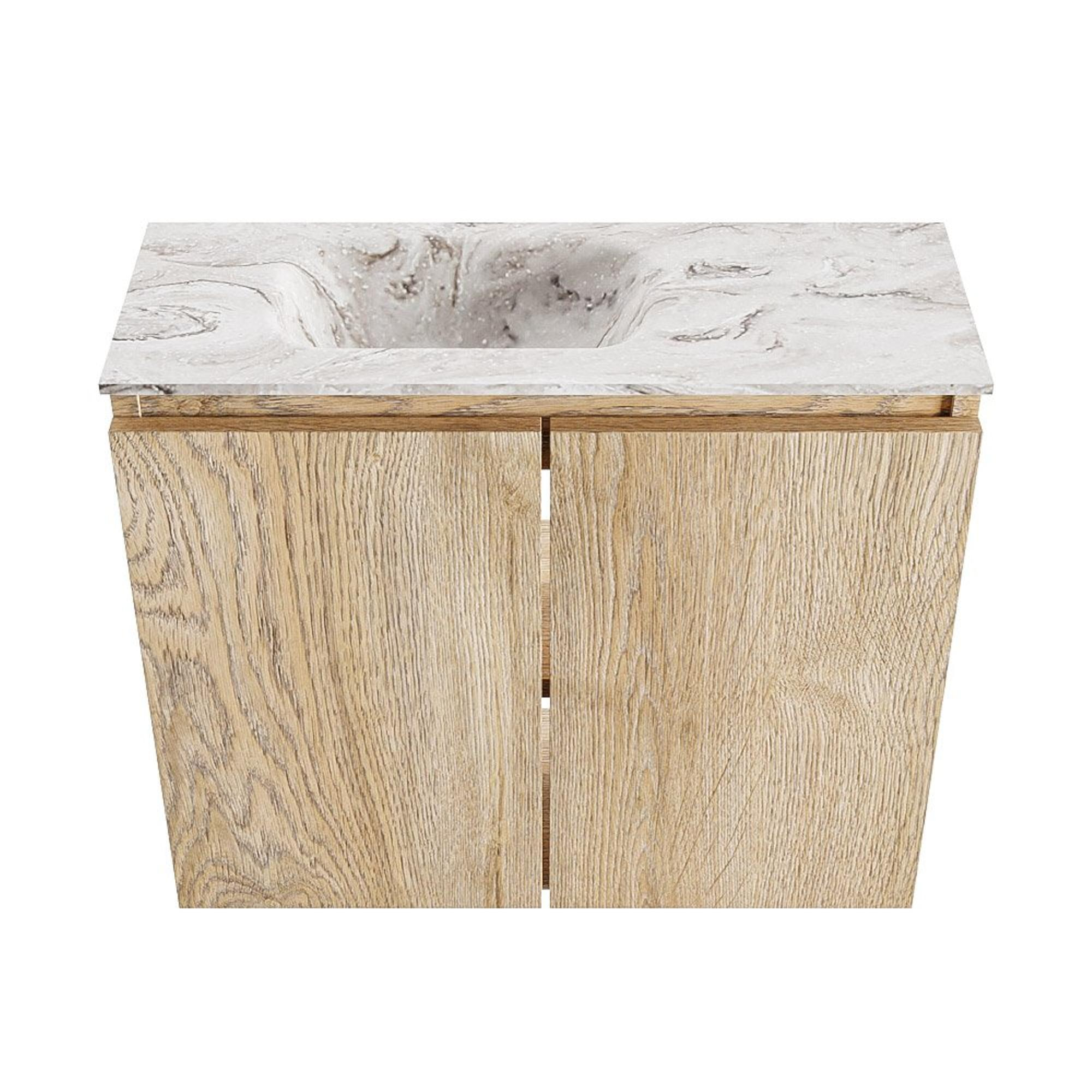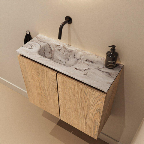 MONDIAZ TURE-DLUX 60cm toiletmeubel Washed Oak. EDEN wastafel Glace positie links. Zonder kraangat.