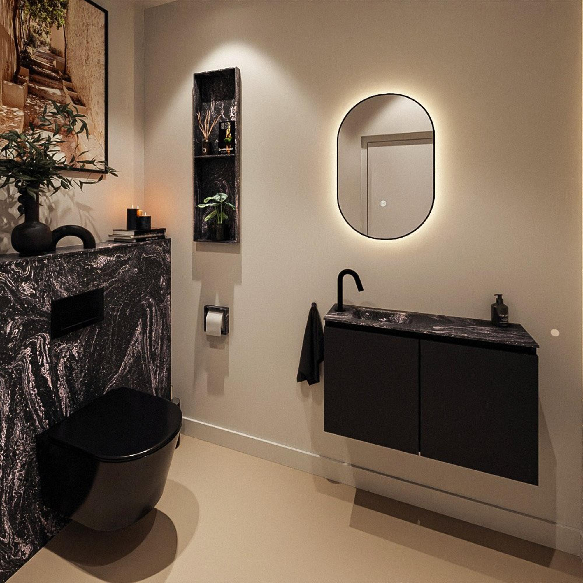 MONDIAZ TURE-DLUX 80cm toiletmeubel Urban. EDEN wastafel Lava positie links. Met 1 kraangat.