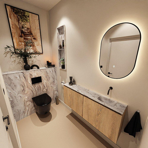 MONDIAZ TURE-DLUX 120cm toiletmeubel Washed Oak. EDEN wastafel Glace positie rechts. Zonder kraangat.