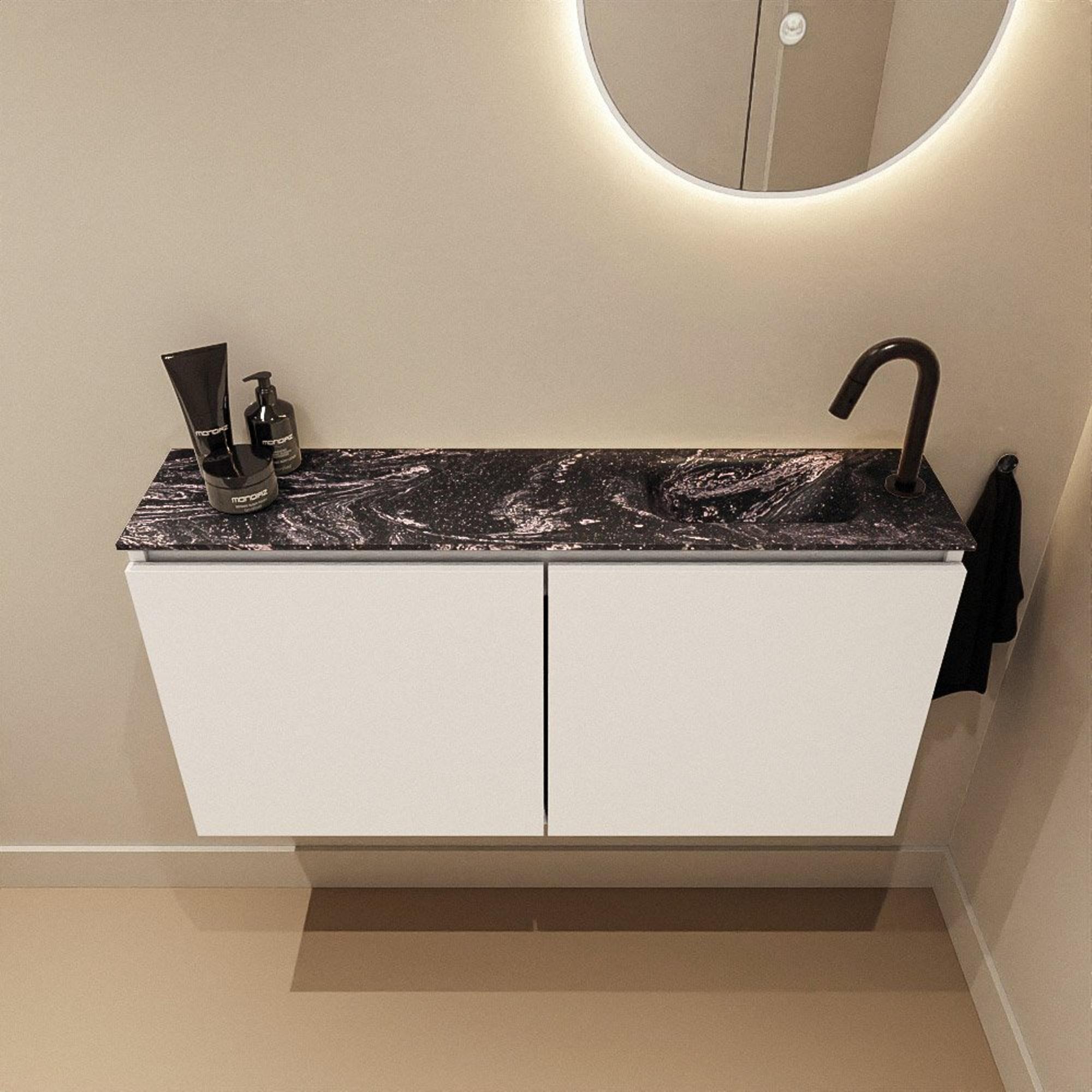 MONDIAZ TURE-DLUX 100cm toiletmeubel Talc. EDEN wastafel Lava positie rechts. Met 1 kraangat.
