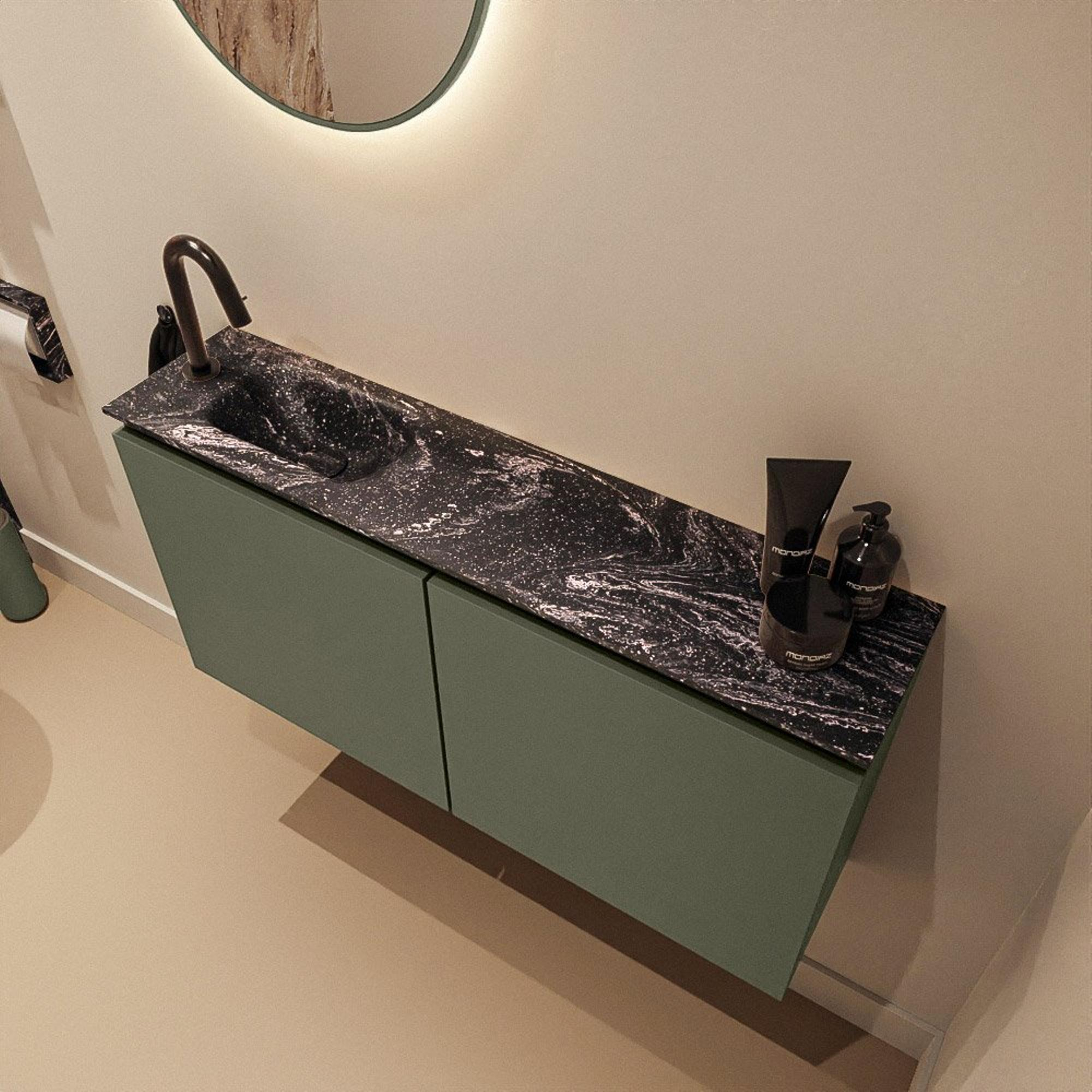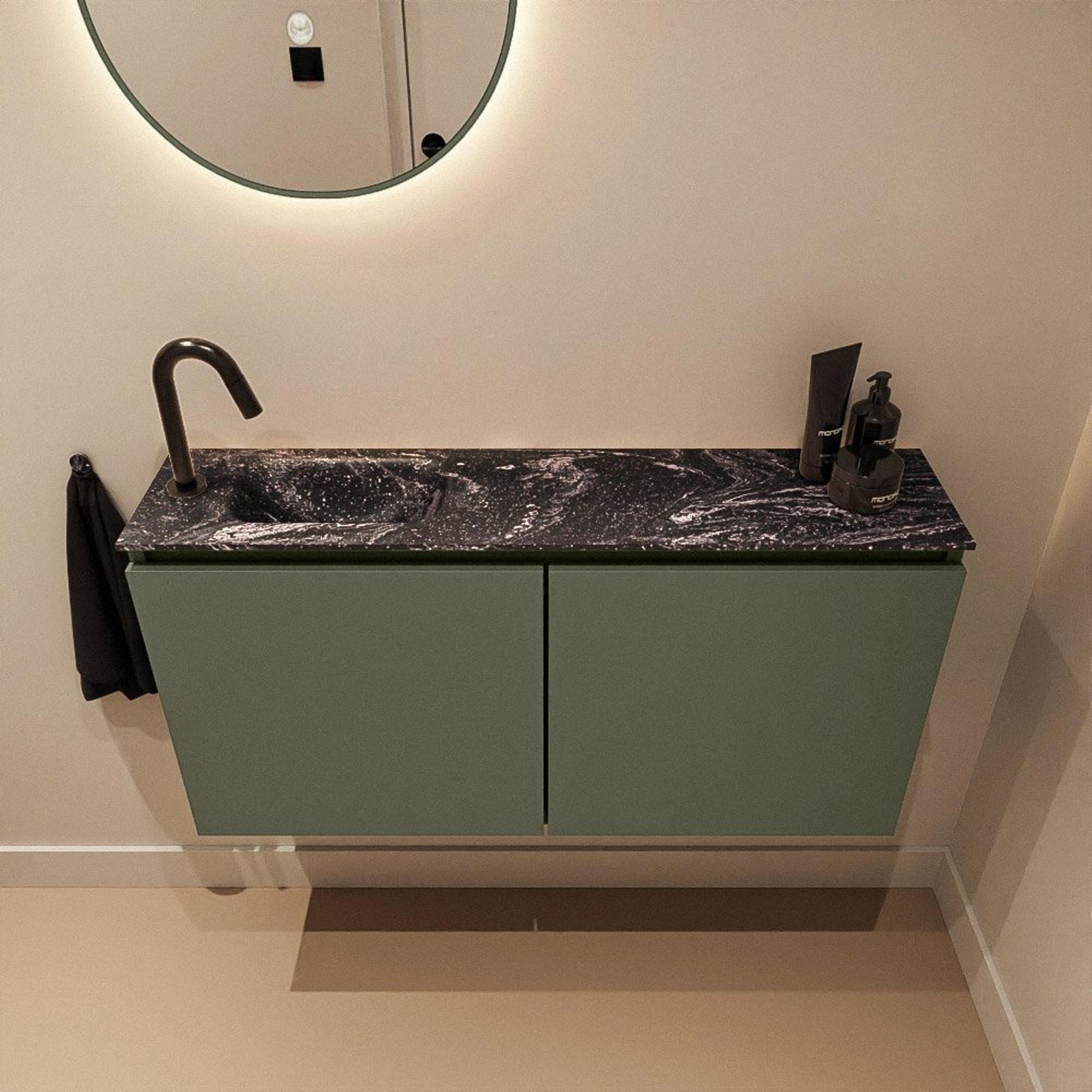 MONDIAZ TURE-DLUX 100cm toiletmeubel Army. EDEN wastafel Lava positie links. Met 1 kraangat.