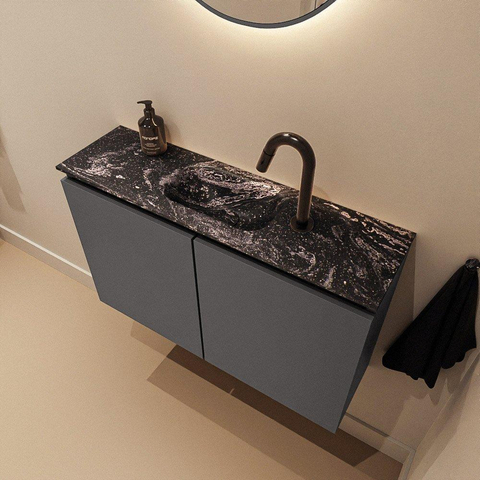 MONDIAZ TURE-DLUX 80cm toiletmeubel Dark Grey. EDEN wastafel Lava positie midden. Met 1 kraangat.