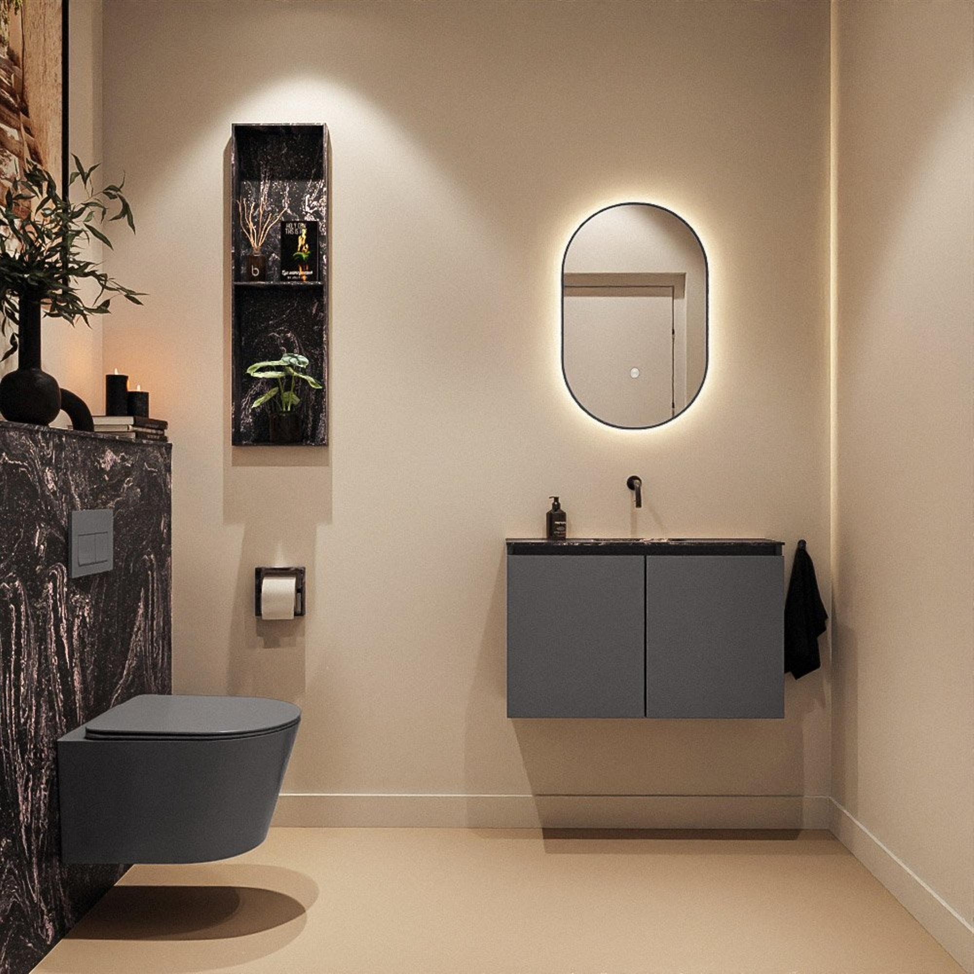 MONDIAZ TURE-DLUX 80cm toiletmeubel Dark Grey. EDEN wastafel Lava positie midden. Zonder kraangat.