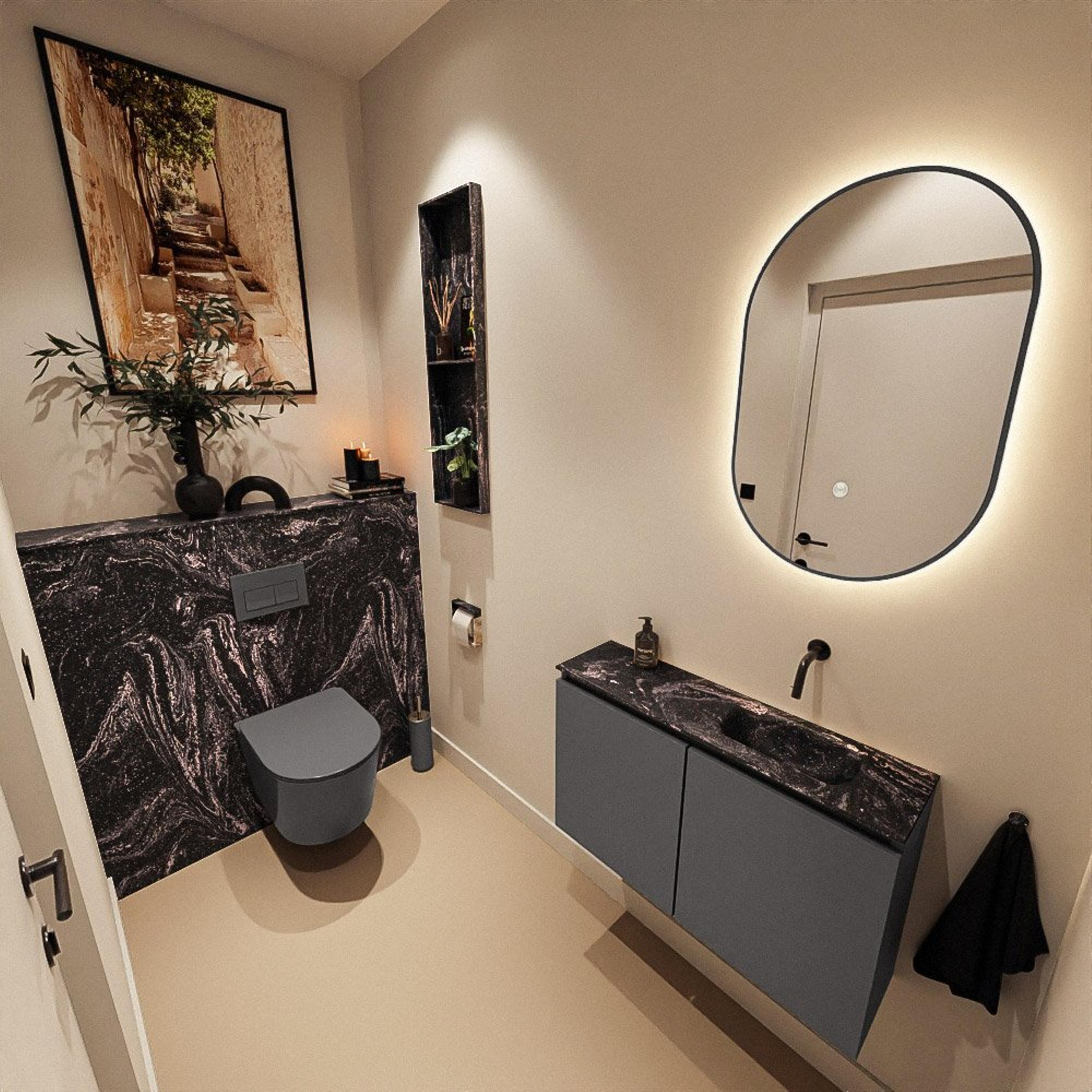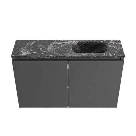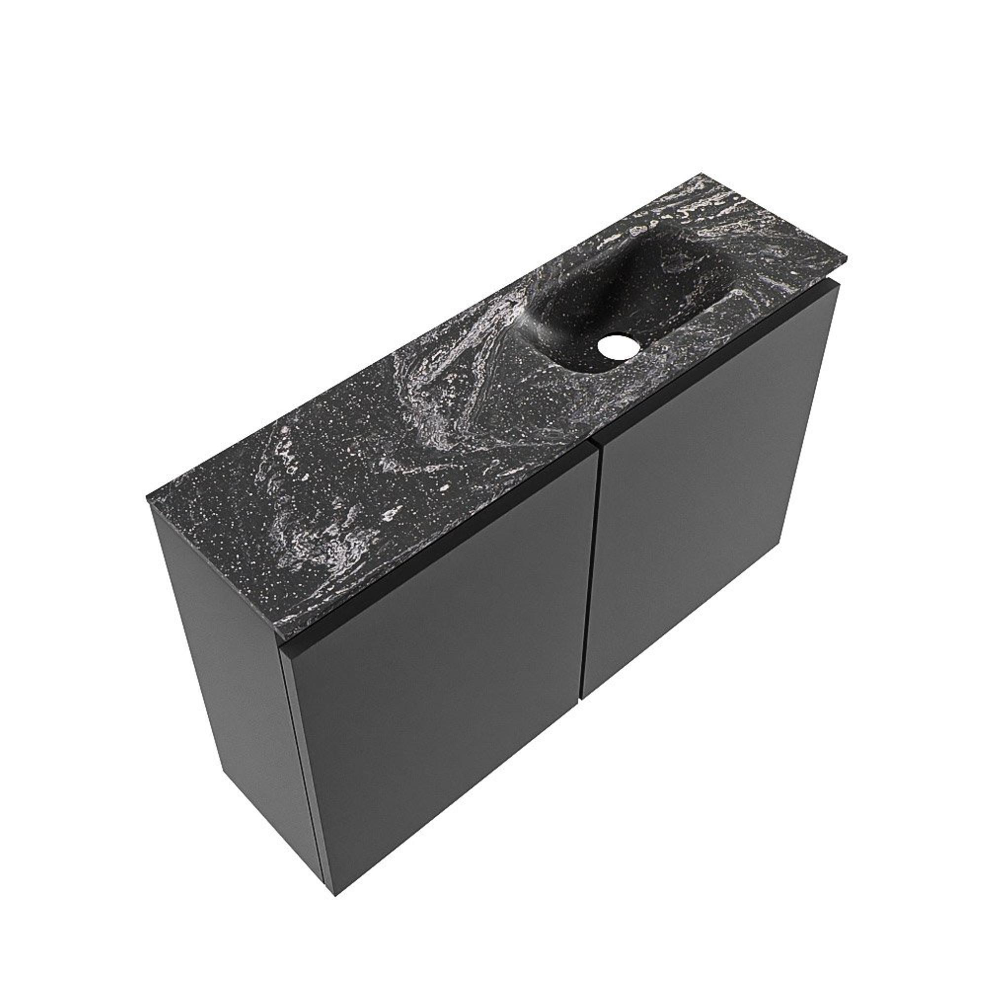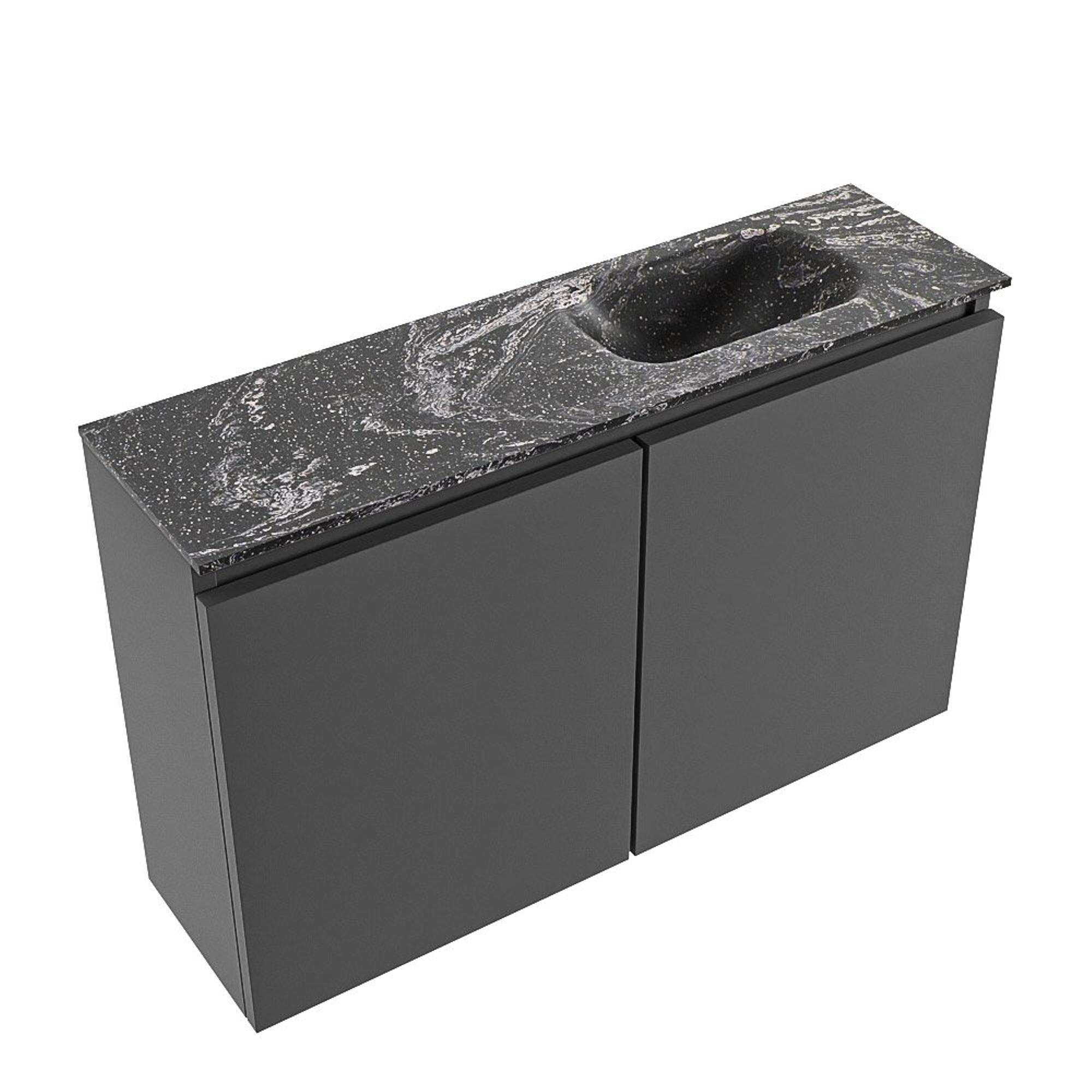 MONDIAZ TURE-DLUX 80cm toiletmeubel Dark Grey. EDEN wastafel Lava positie rechts. Zonder kraangat.