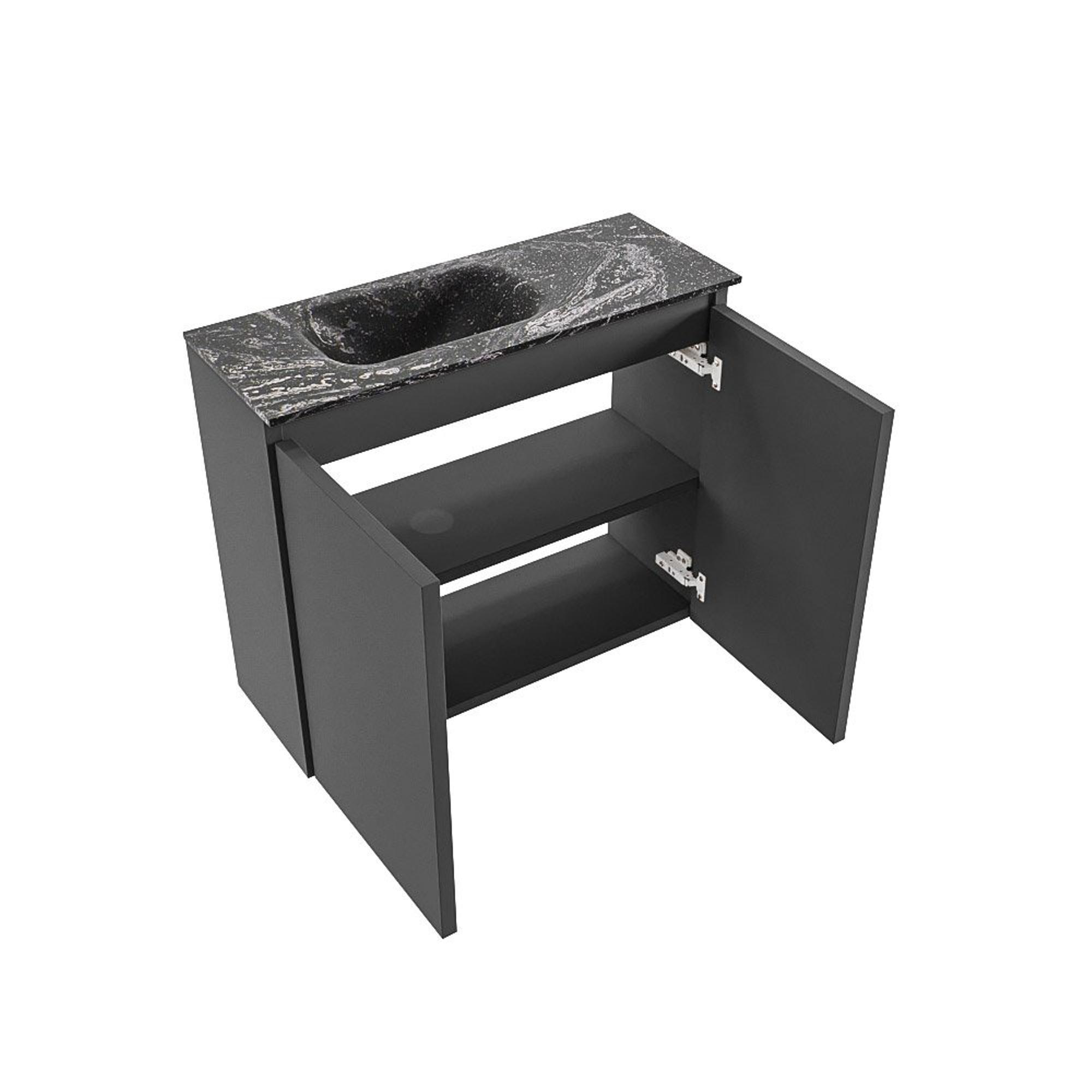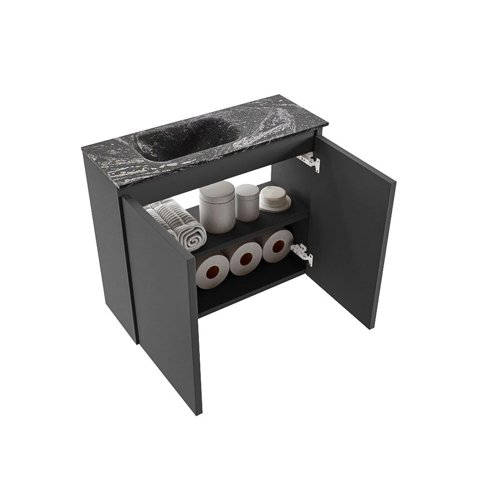 MONDIAZ TURE-DLUX 60cm toiletmeubel Dark Grey. EDEN wastafel Lava positie links. Zonder kraangat.