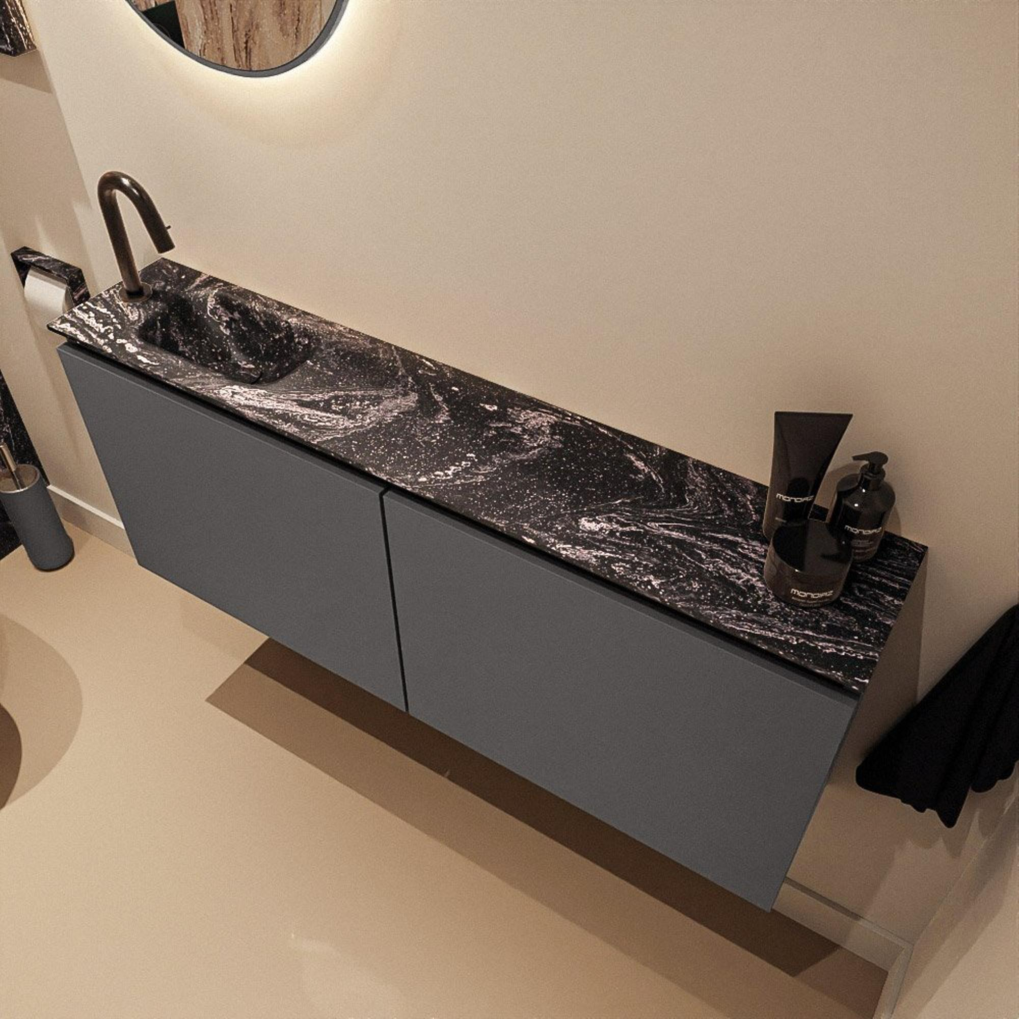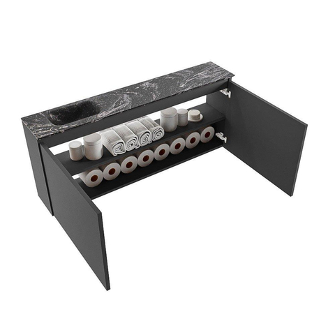 MONDIAZ TURE-DLUX 120cm toiletmeubel Dark Grey. EDEN wastafel Lava positie links. Met 1 kraangat.
