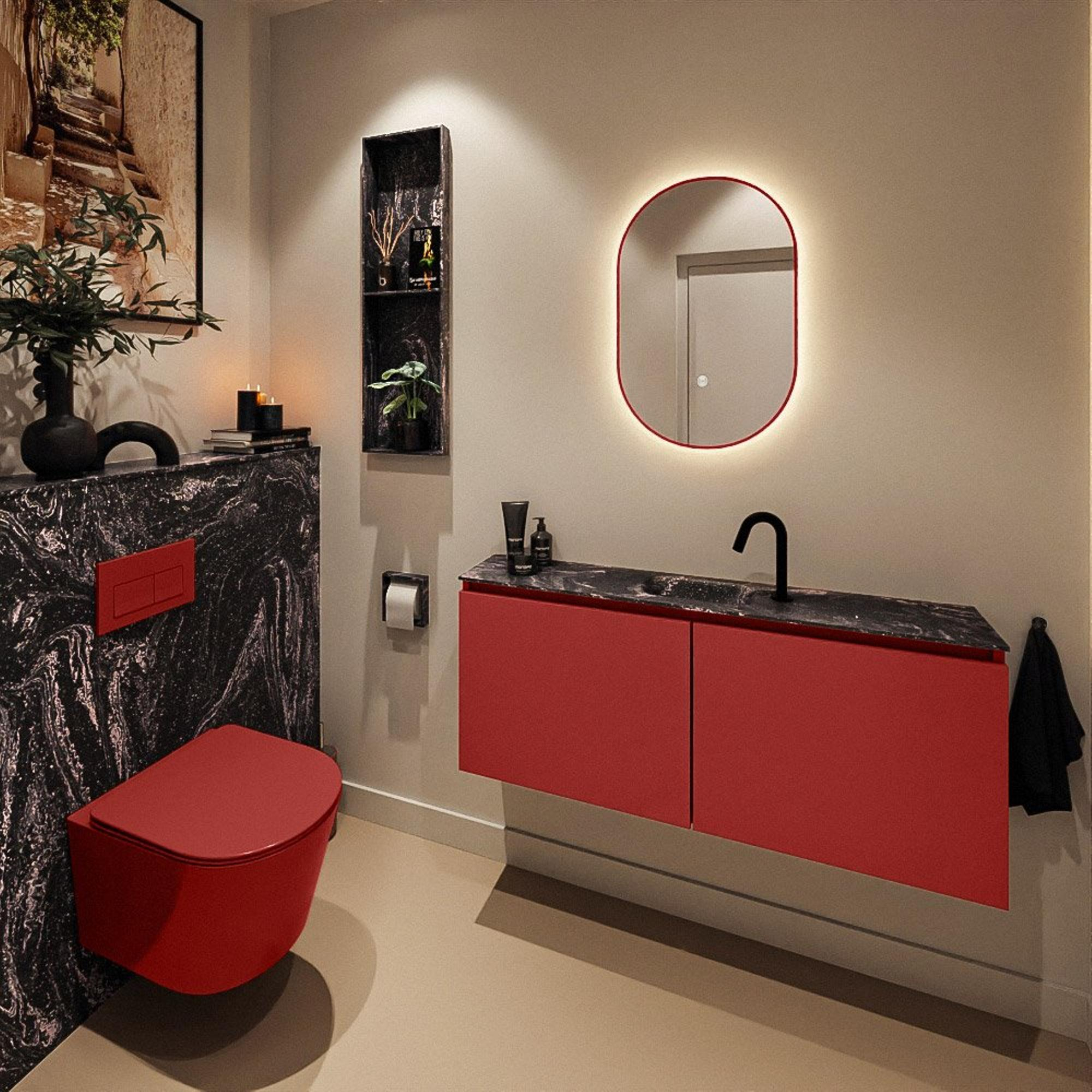 MONDIAZ TURE-DLUX 120cm toiletmeubel Fire. EDEN wastafel Lava positie midden. Met 1 kraangat.
