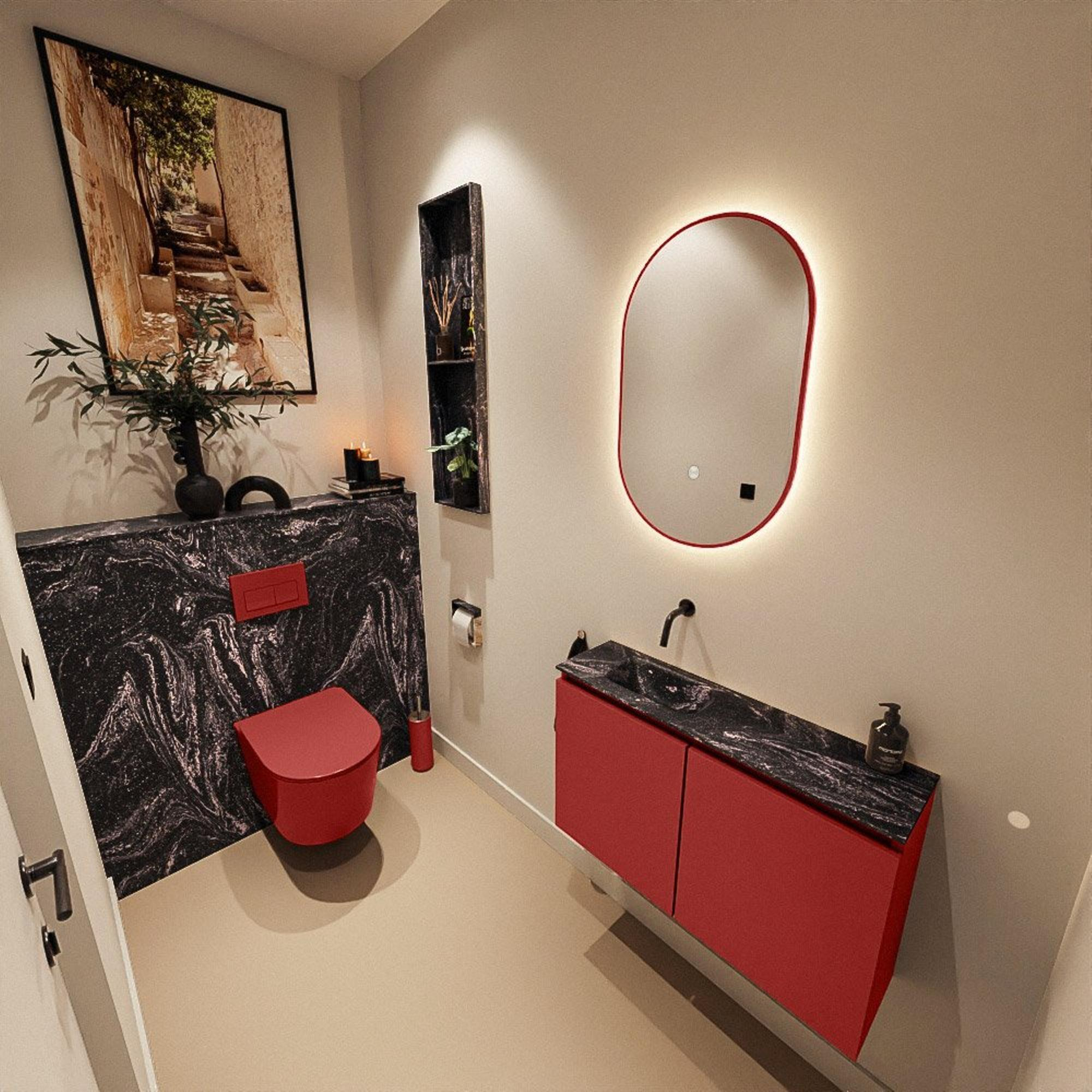 MONDIAZ TURE-DLUX 80cm toiletmeubel Fire. EDEN wastafel Lava positie links. Zonder kraangat.