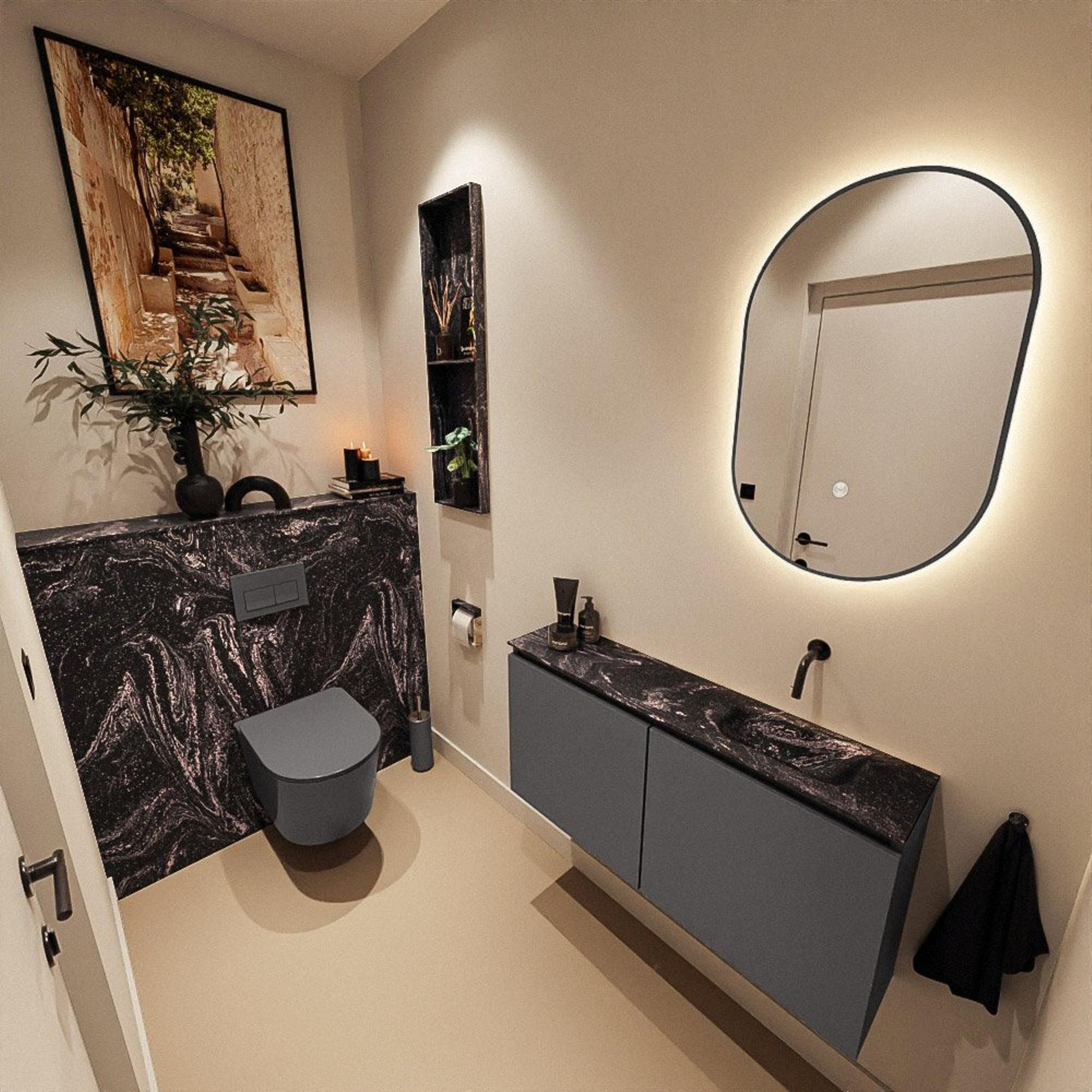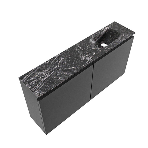 MONDIAZ TURE-DLUX 100cm toiletmeubel Dark Grey. EDEN wastafel Lava positie rechts. Zonder kraangat.
