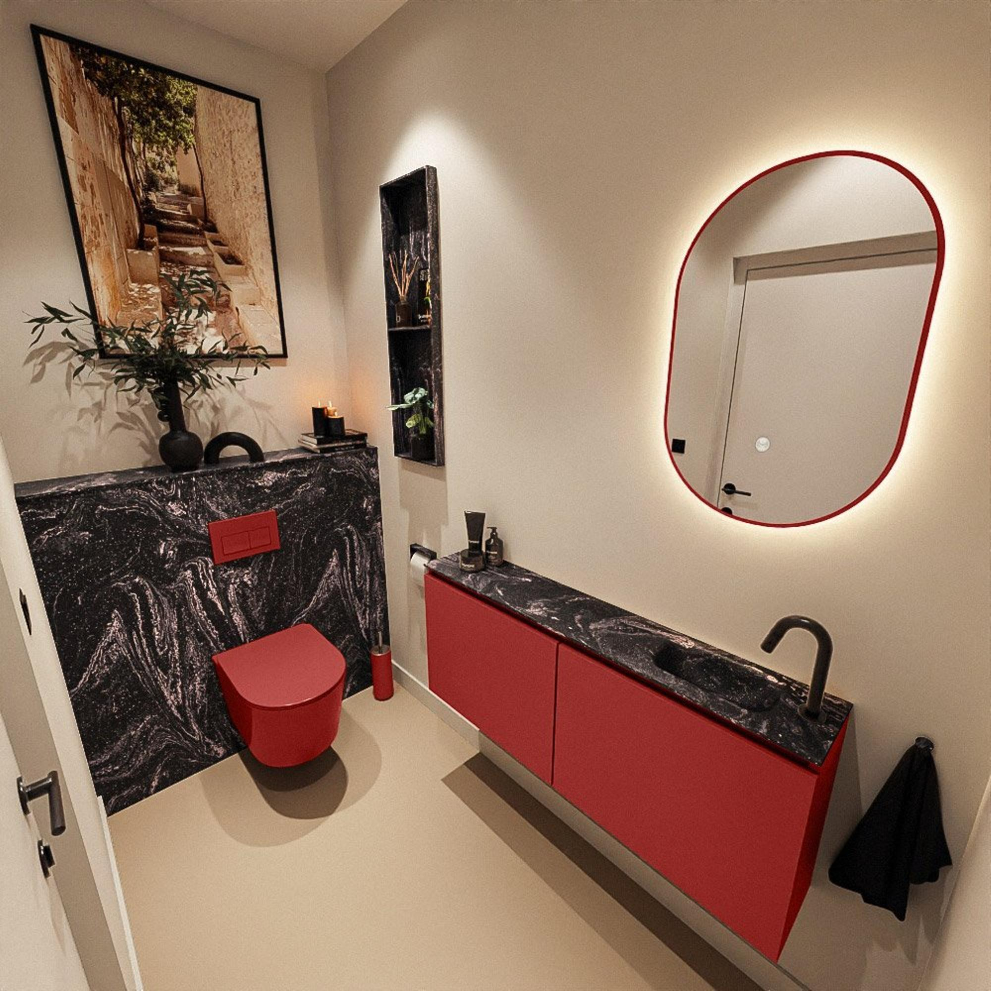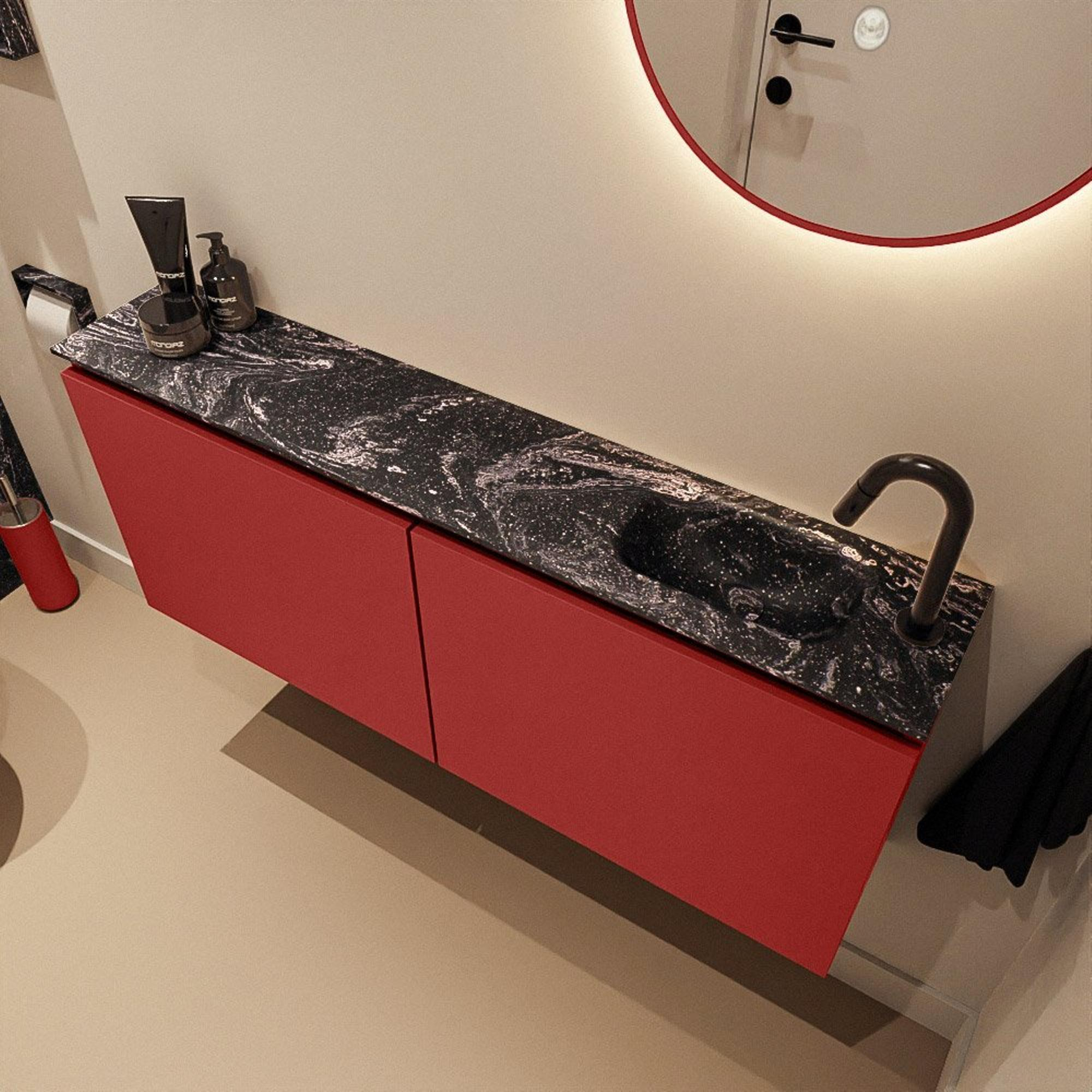 MONDIAZ TURE-DLUX 120cm toiletmeubel Fire. EDEN wastafel Lava positie rechts. Met 1 kraangat.