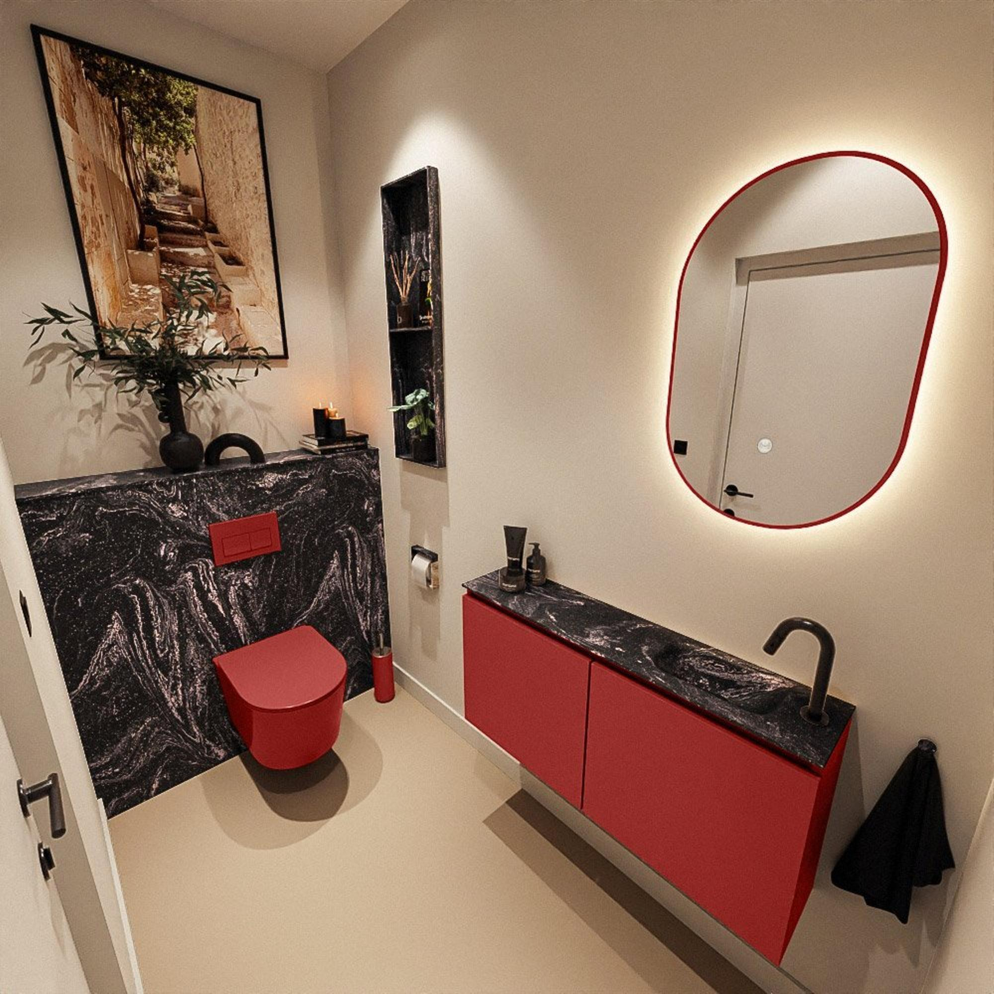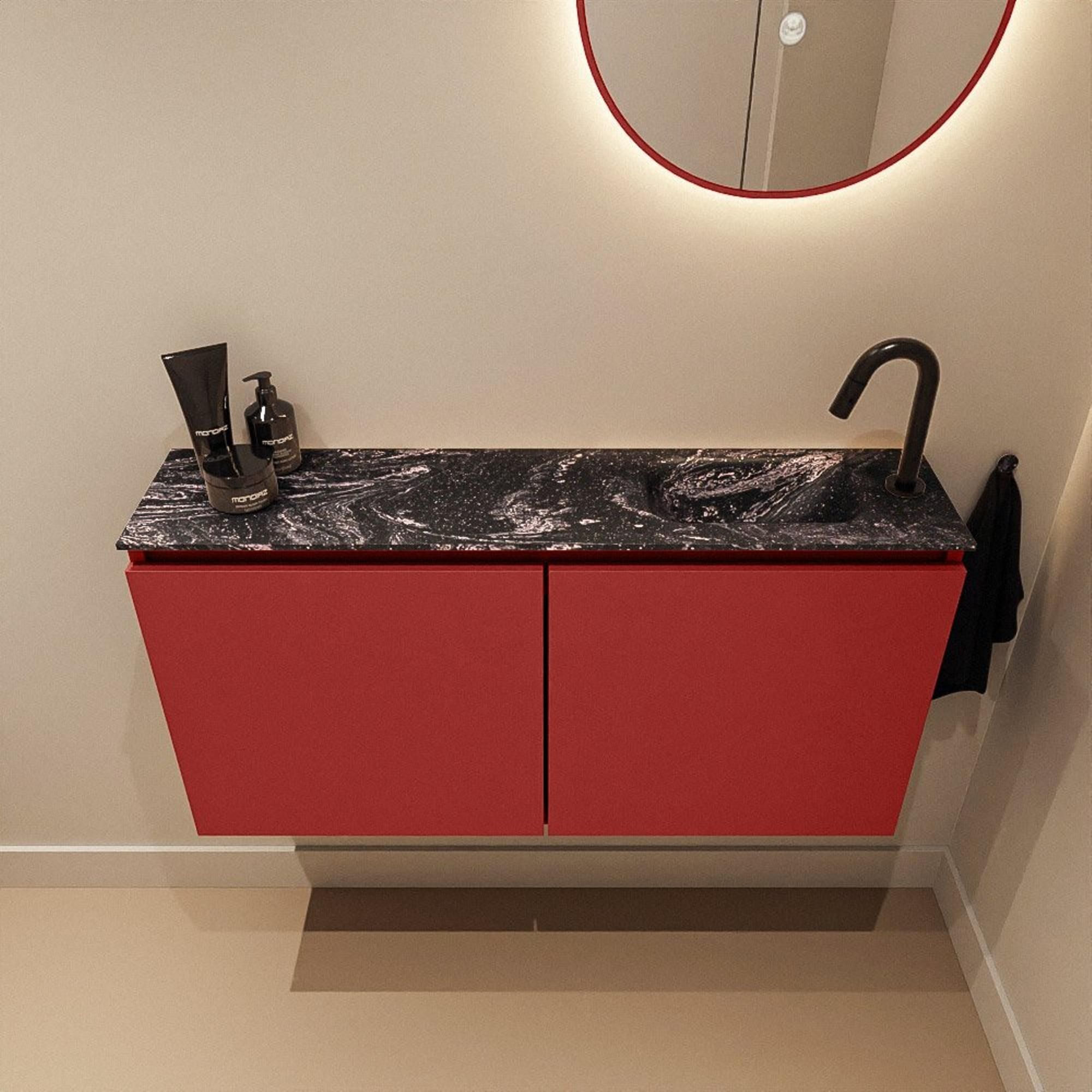 MONDIAZ TURE-DLUX 100cm toiletmeubel Fire. EDEN wastafel Lava positie rechts. Met 1 kraangat.