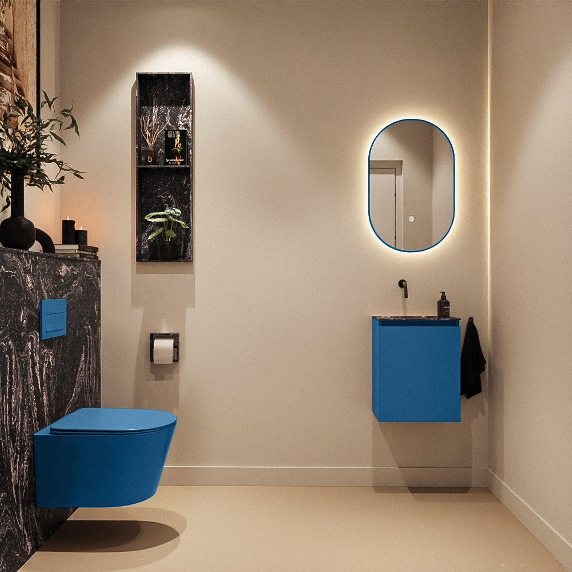 MONDIAZ TURE-DLUX 40cm toiletmeubel Jeans. EDEN wastafel Lava positie links. Zonder kraangat.