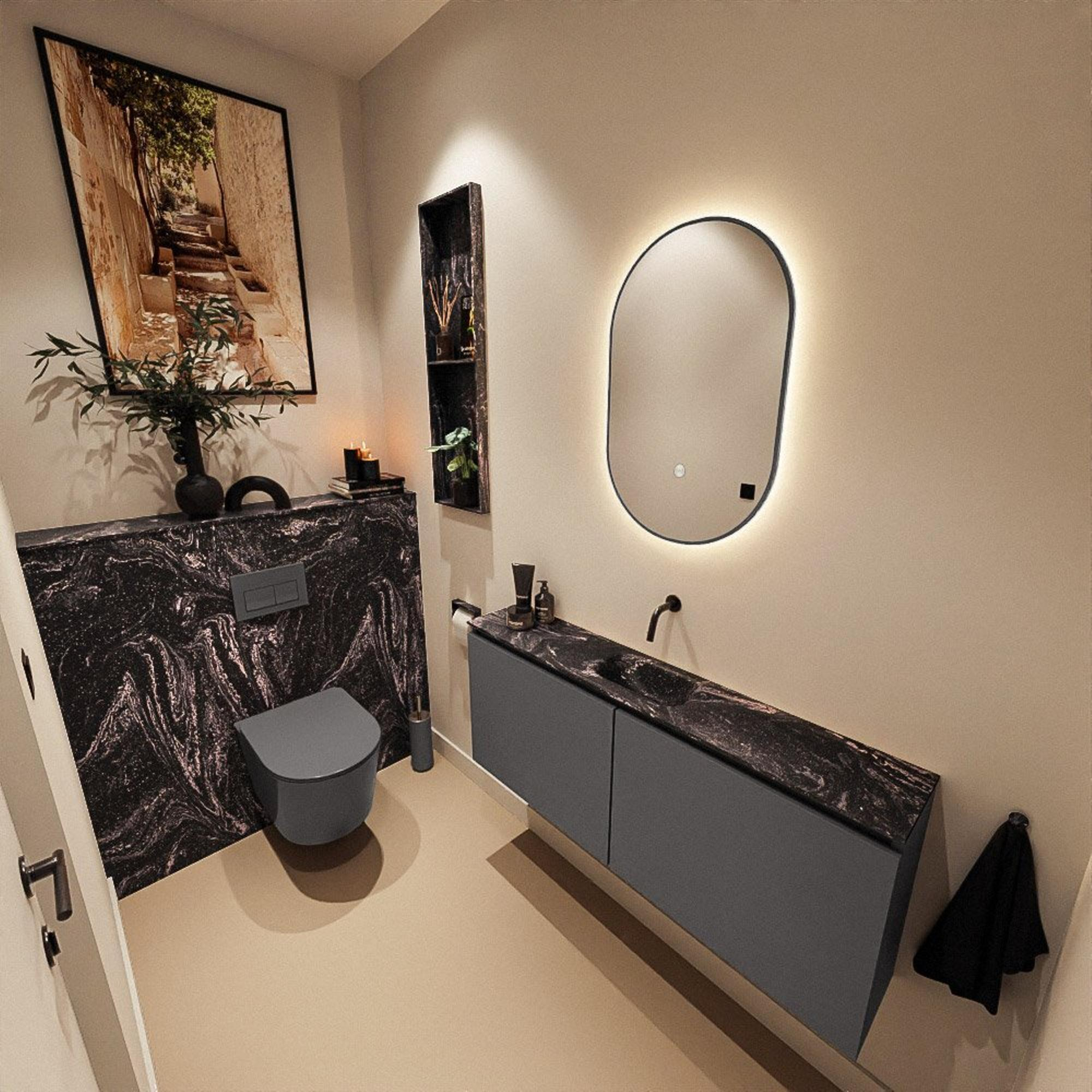 MONDIAZ TURE-DLUX 120cm toiletmeubel Dark Grey. EDEN wastafel Lava positie midden. Zonder kraangat.