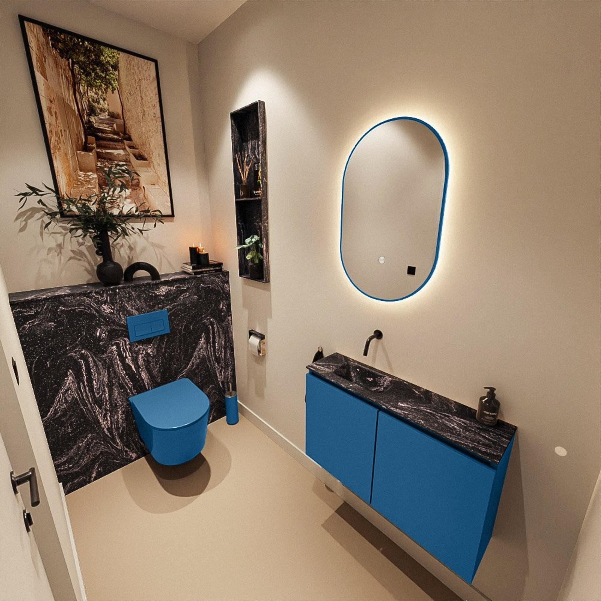 MONDIAZ TURE-DLUX 80cm toiletmeubel Jeans. EDEN wastafel Lava positie links. Zonder kraangat.