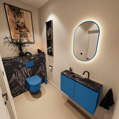 MONDIAZ TURE-DLUX 80cm toiletmeubel Jeans. EDEN wastafel Lava positie midden. Met 1 kraangat.