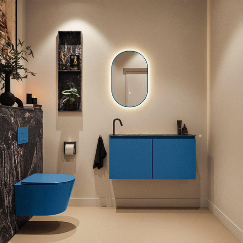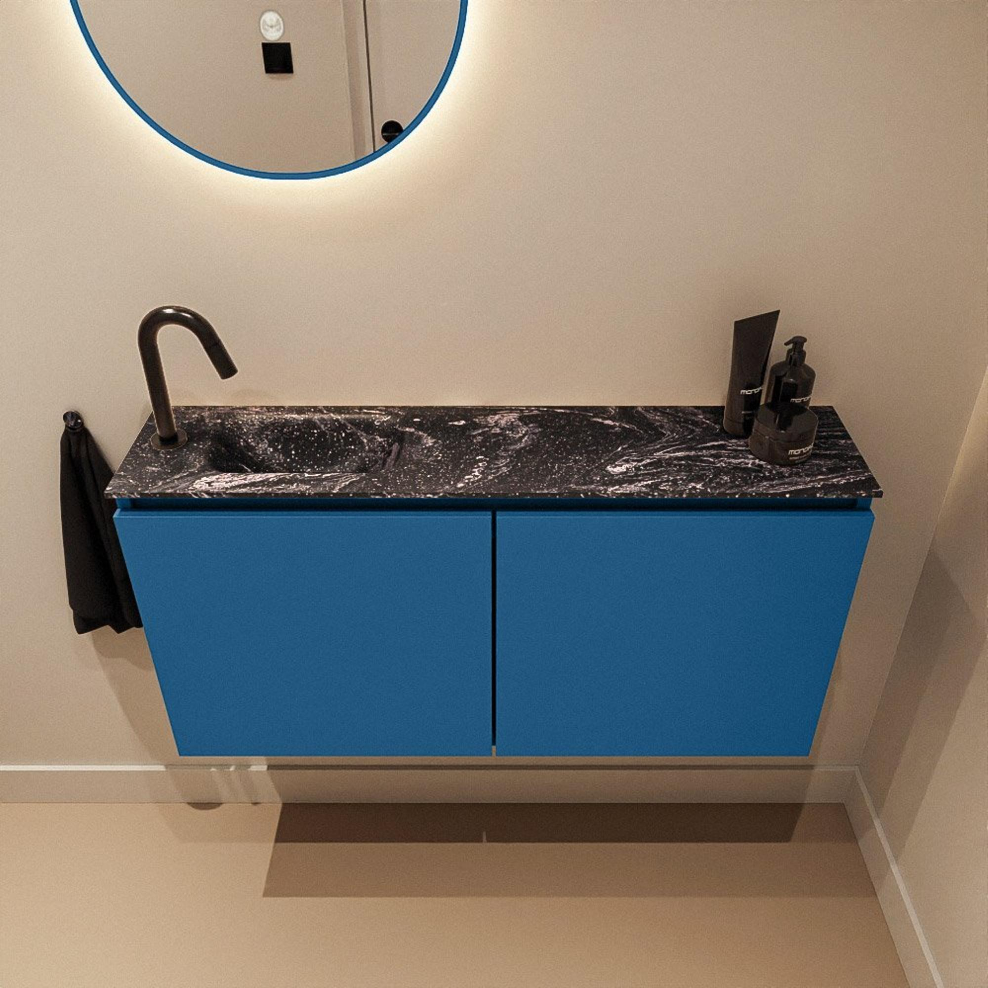 MONDIAZ TURE-DLUX 100cm toiletmeubel Jeans. EDEN wastafel Lava positie links. Met 1 kraangat.