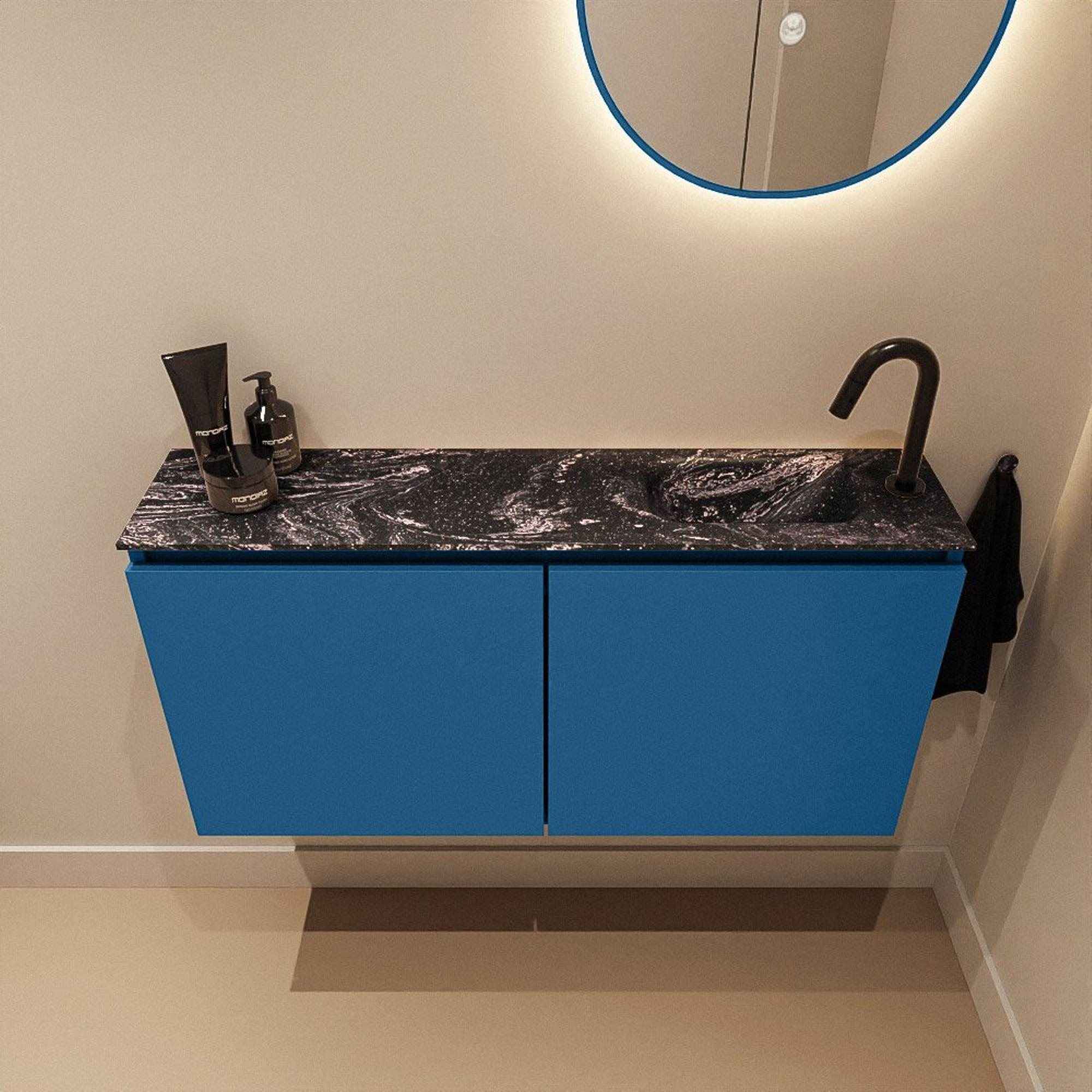 MONDIAZ TURE-DLUX 100cm toiletmeubel Jeans. EDEN wastafel Lava positie rechts. Met 1 kraangat.