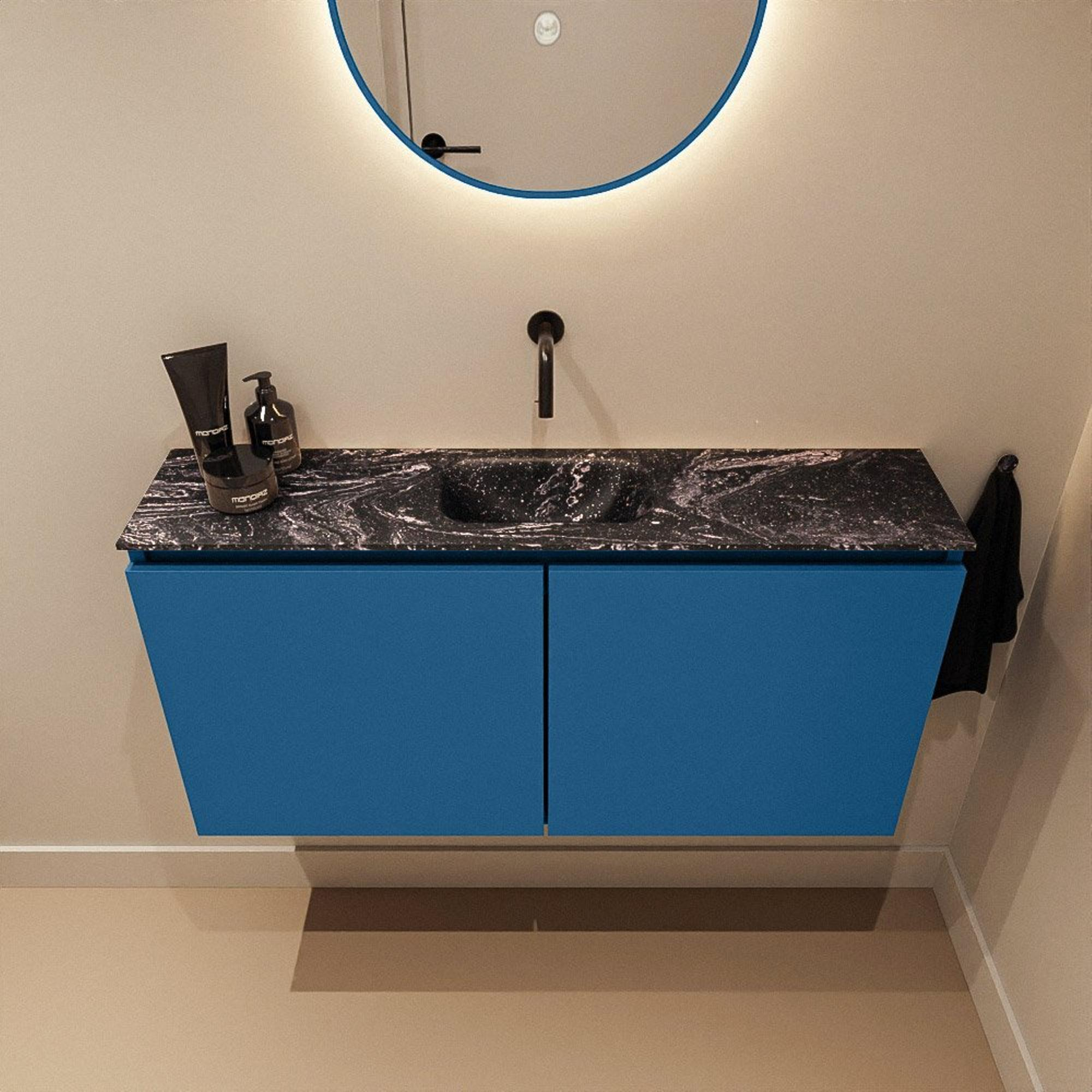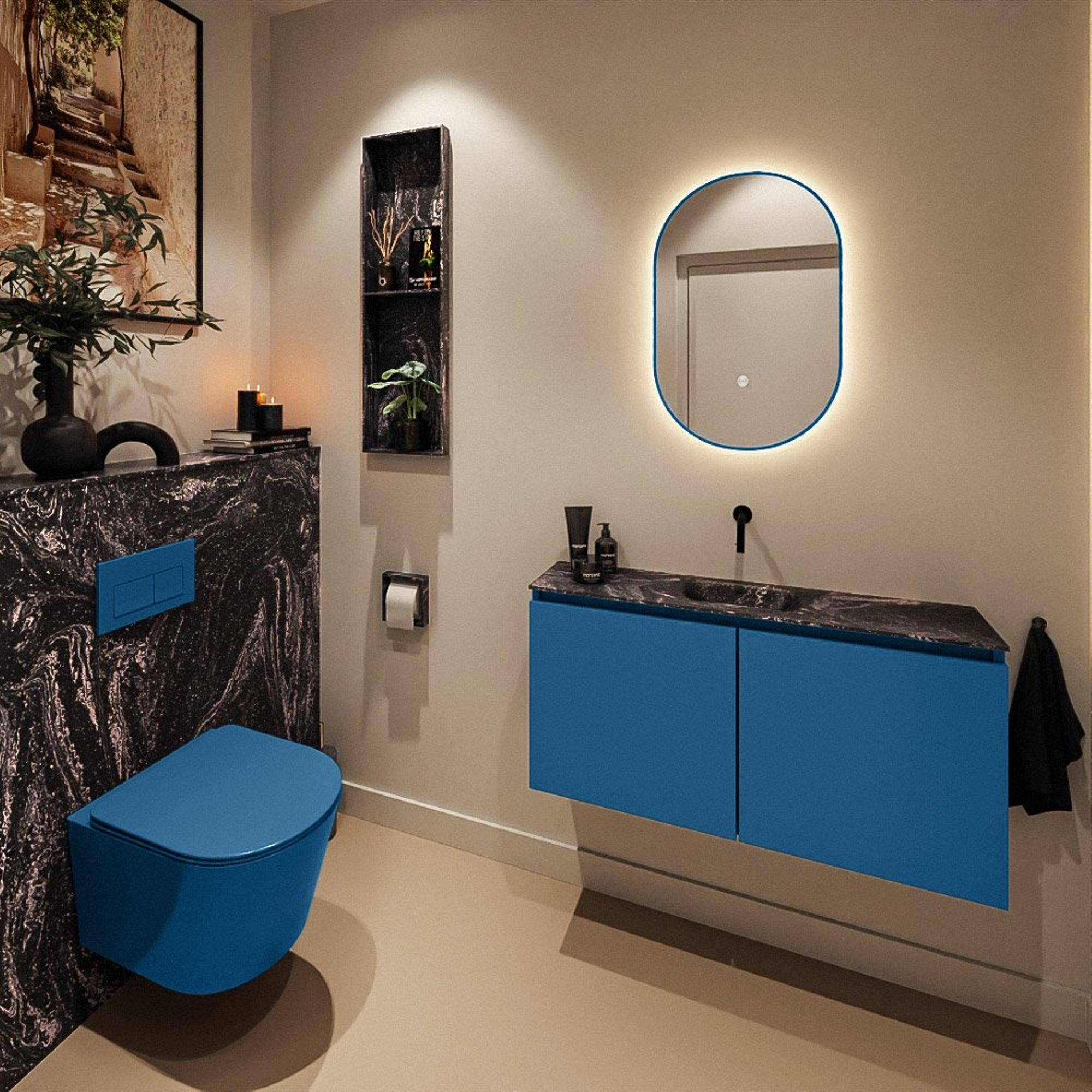MONDIAZ TURE-DLUX 100cm toiletmeubel Jeans. EDEN wastafel Lava positie midden. Zonder kraangat.